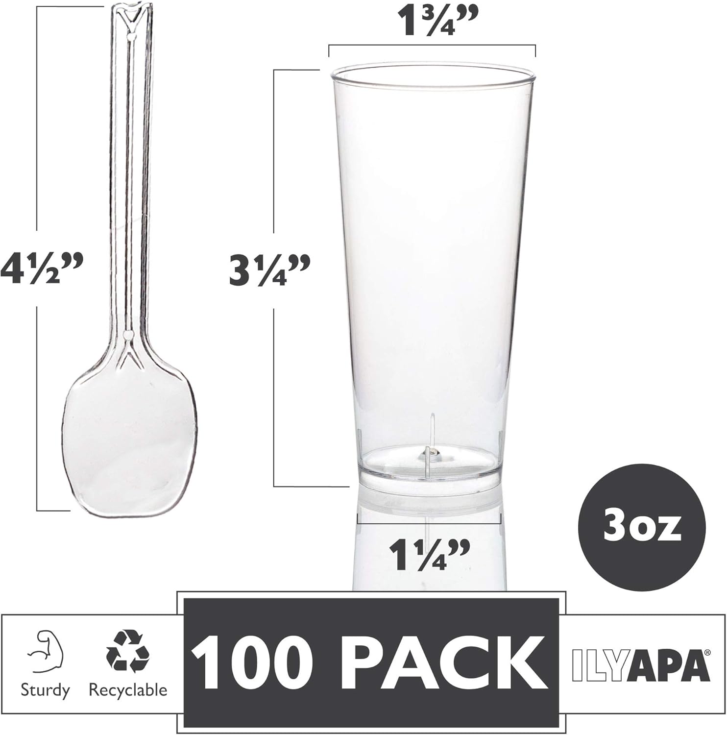 - Durable and Elegant - Ilyapa's premium and crystal clear hard plastic shot glasses 3oz have a solid, quality feel, and stand up to the needs of your party or gathering. The best part is, once your event is over, there are no dishes to do! Simply wash and reuse them, or dispose of them!
