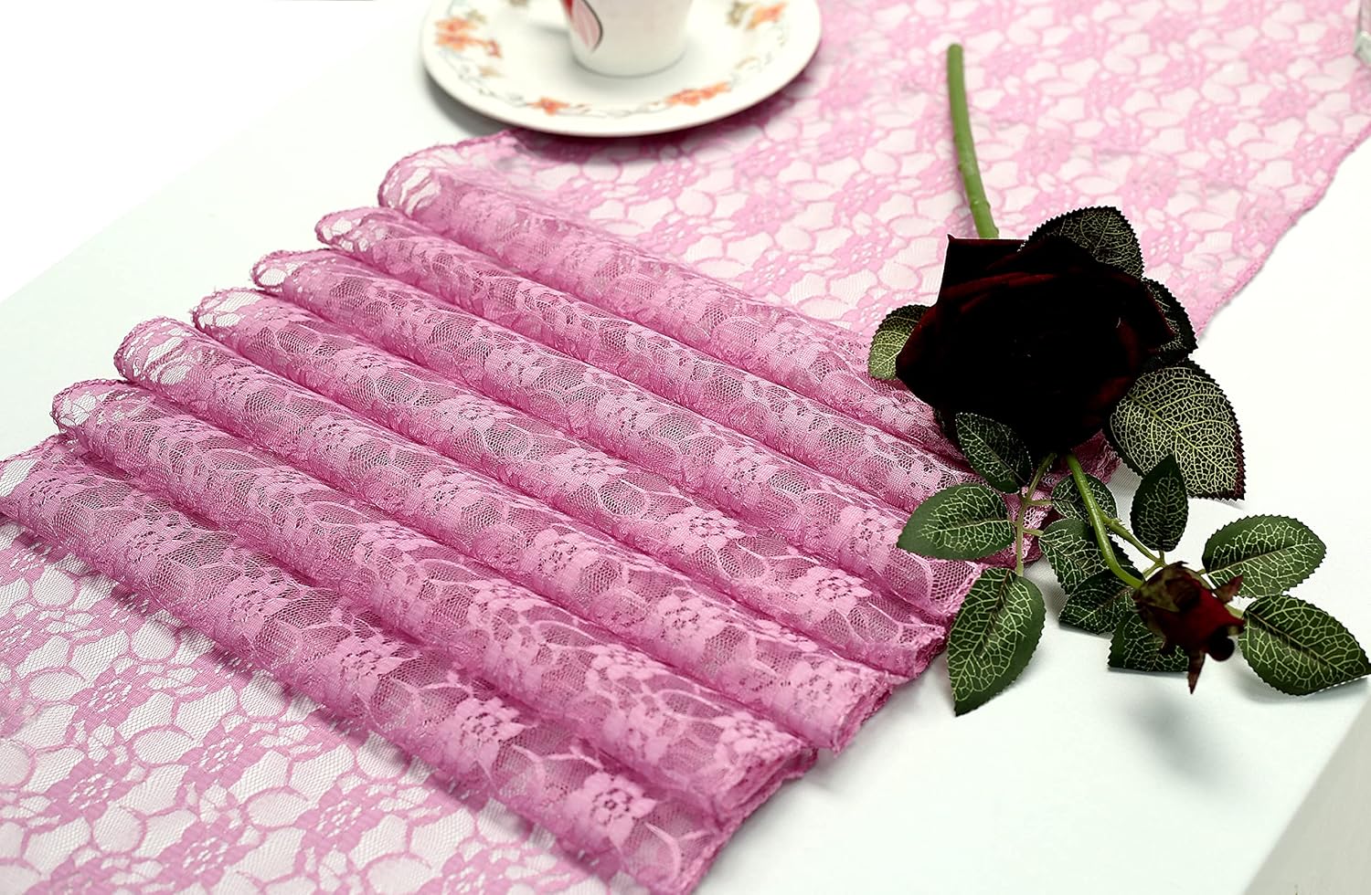 MDS Pack of 5 Wedding 12 x 108 inches Lace Table Runner for Wedding, Decorations for Birthday Parties, Banquets, Graduations, Engagements, and Runners fit Rectangle, Round Table- Dusty Pink