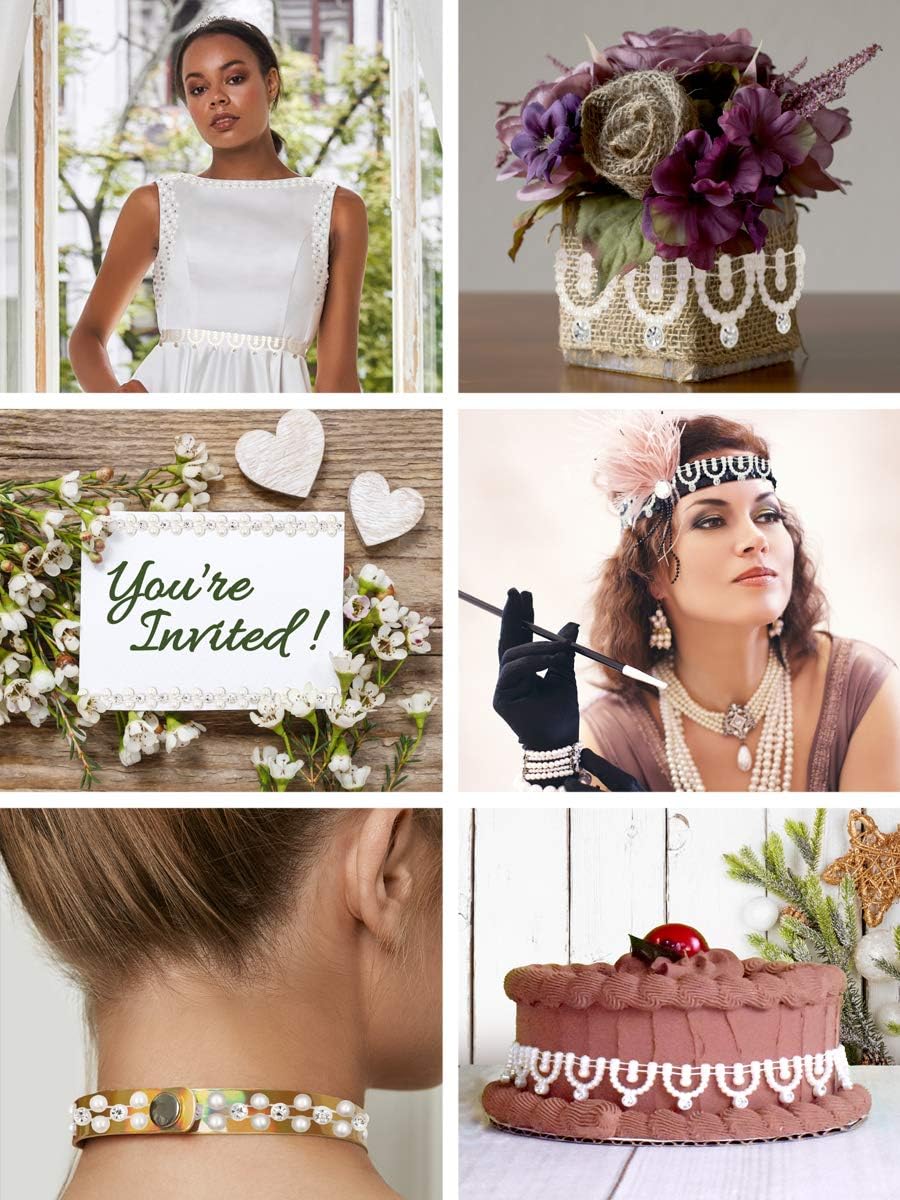 - String Pearl Decorations for Wedding Birthday Holiday: The pearl trim by the yard is perfect pearls garlands for Christmas tree, wedding centerpieces, cakes, wreaths, bowl filler, flowers bouquets, tables, chairs, backdrops, & wrapping gifts and favors.