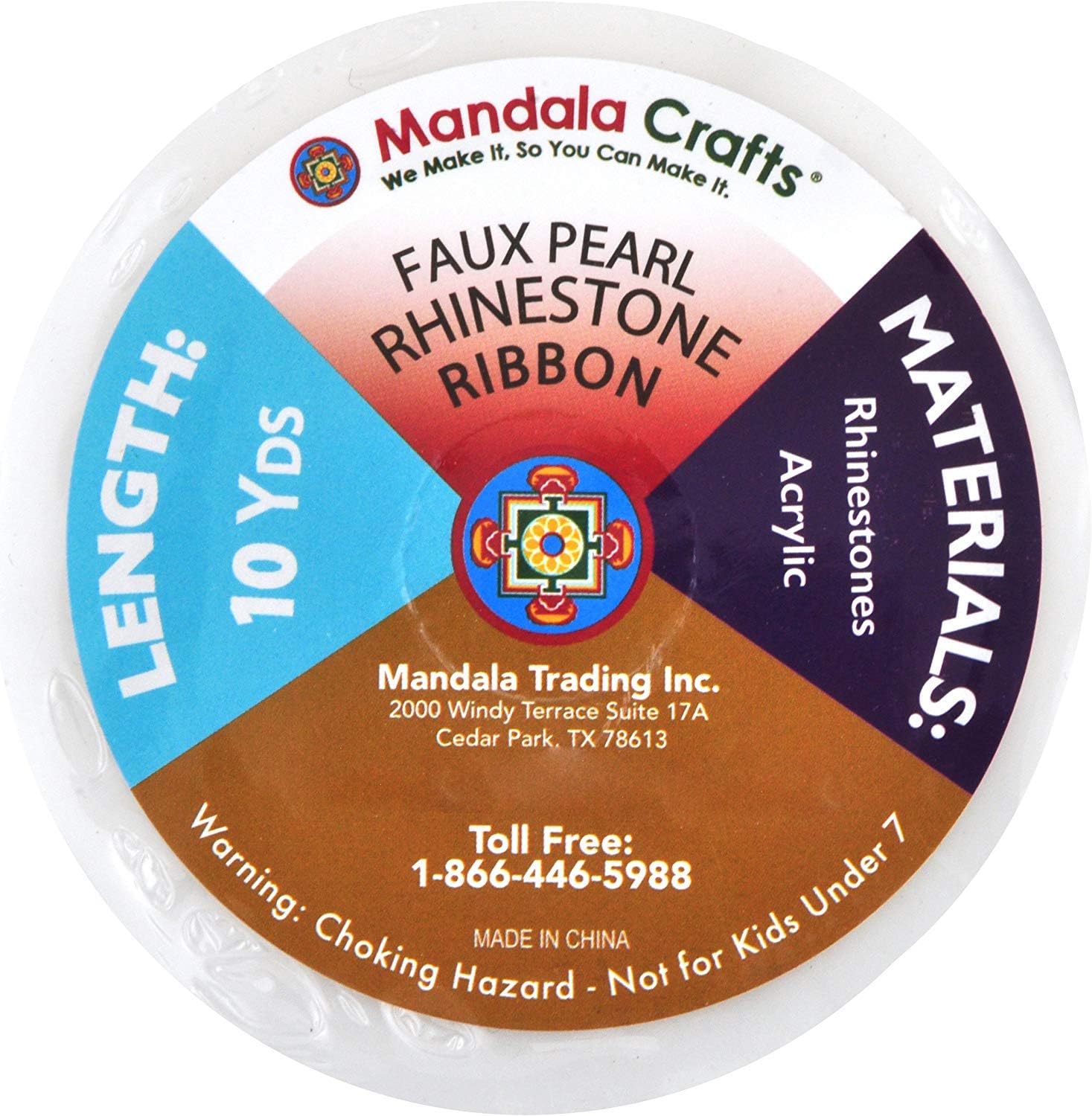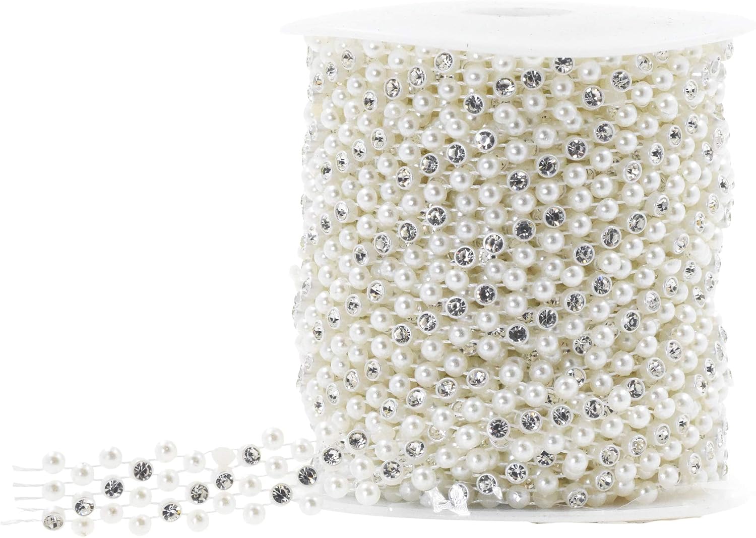 Mandala Crafts 0.5 Inch Crystal Faux White Pearl Beads Roll - 10 Yards Strand of Rhinestones Fake Pearls Chain Garlands Spool String for Christmas Tree, Wedding, Party, Vases, DIY Decoration