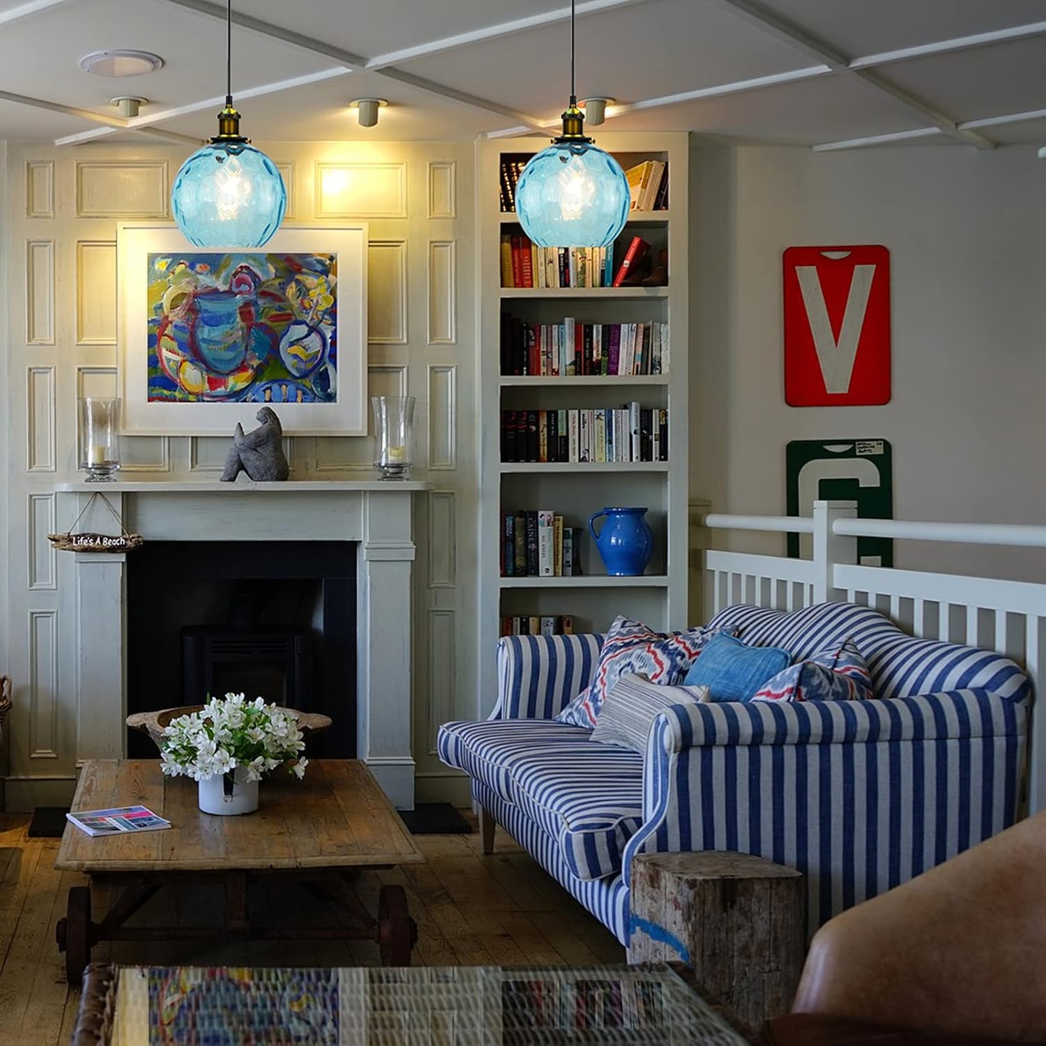Pendant Light Shade Industrial Hanging Lights Fixtures Ceiling Outdoor Pendant Lighting for Kitchen Island Dining Room Unique Lamp in Kitchen Farmhouse Bedroom (Blue, 5.9 Inches)