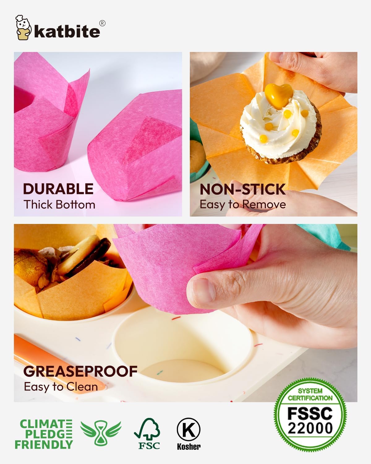 - ELEGANT DESIGN:Compared with ordinary cupcake liners The tulip-shaped design will make the cupcakes look more elegant, and both your customers and guests will leave a deep impression on your cupcakes. If you put them together, it will make your display case look more delicate, and it will also make your cupcakes look more delicious
