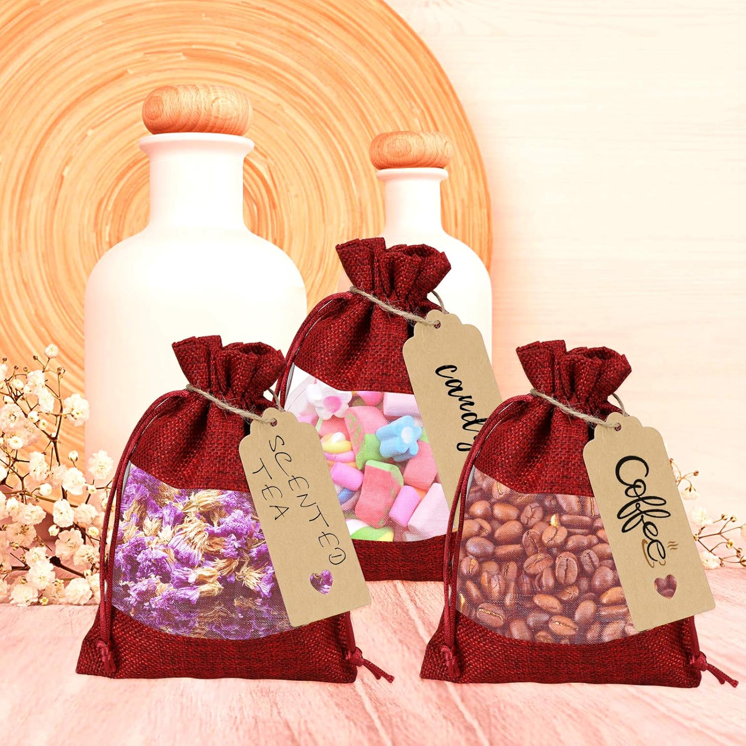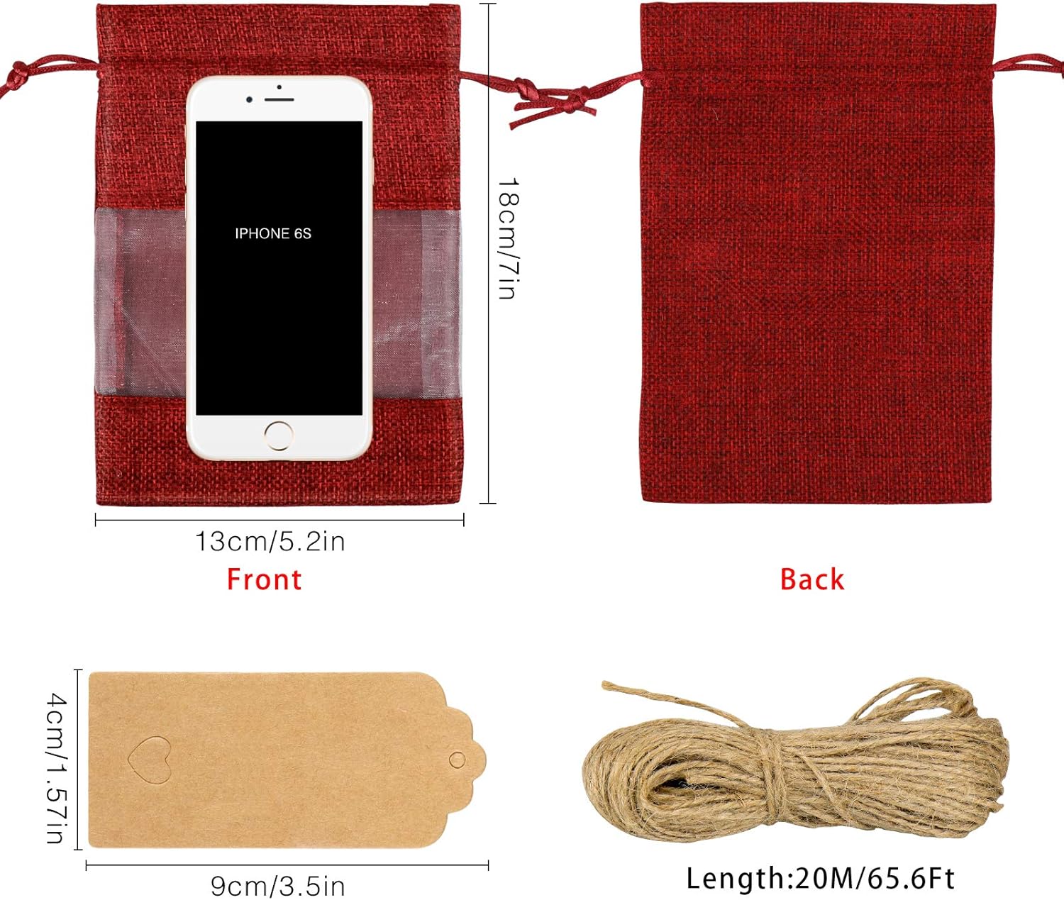 - 【DRAWSTRING DESIGN】- The linen burlap sheer bag feature red linen color base and sheer organza design,for displaying the items and offering easy identification,drawstring design makes it easier for you to place the bag,which can be hung on the hook or string to save space