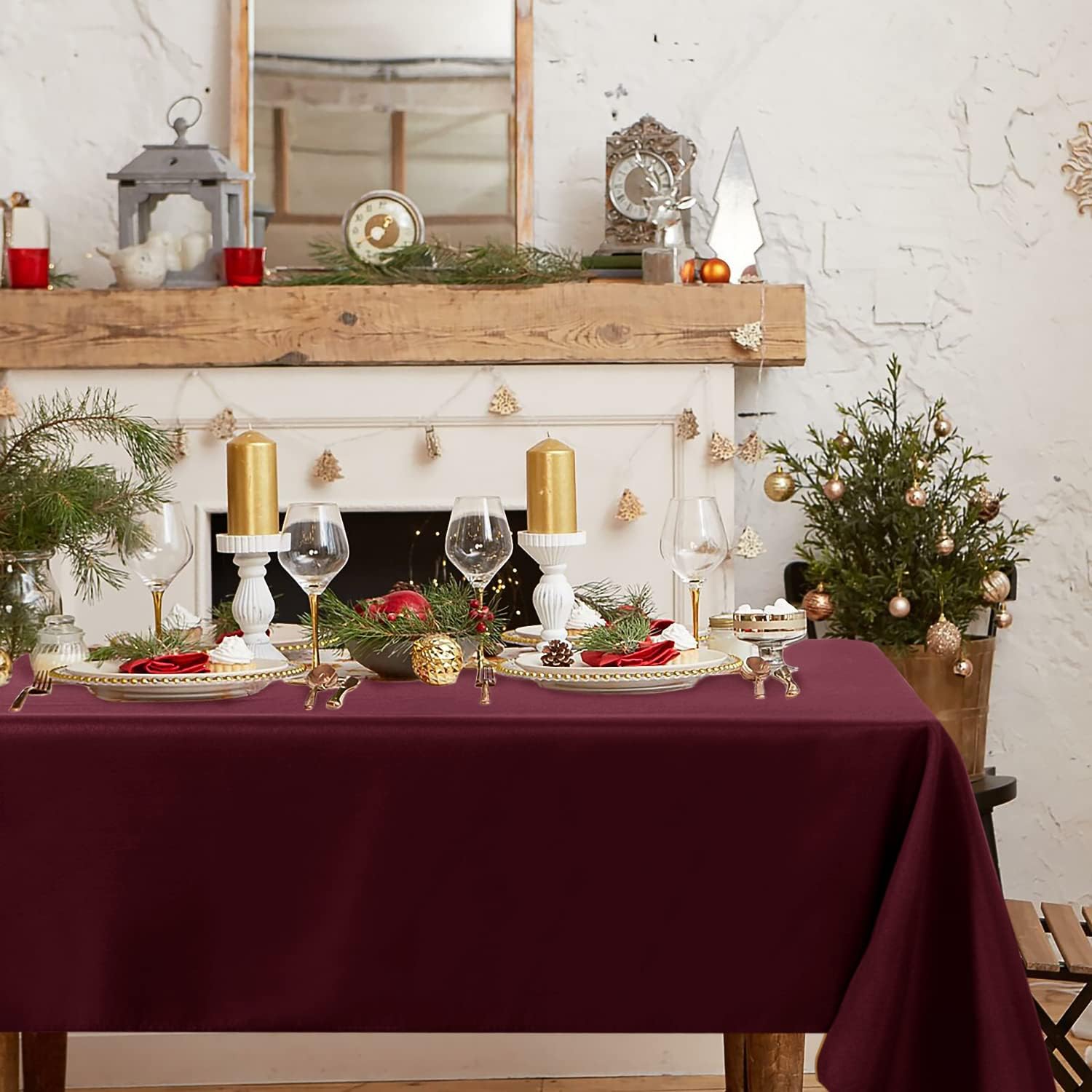 - HIGH QUALITY MATERIAL: Our tablecloth are crafted from high quality durable polyester fabric, perfect to protect and decorate your tables. The package will include 1 piece tablecloth measuring 60 W by 60 L inch Burgundy tablecloth
