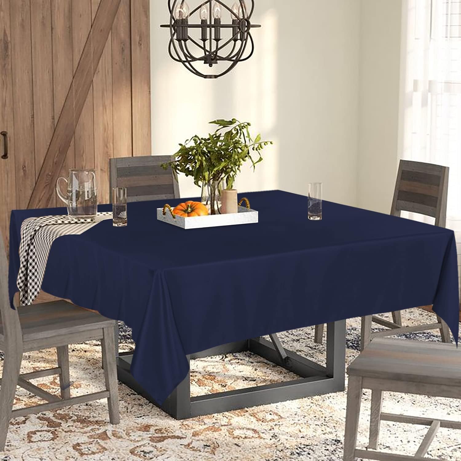 - HIGH QUALITY MATERIAL: Our tablecloth are crafted from high quality durable polyester fabric, perfect to protect and decorate your tables. The package will include 1 piece tablecloth measuring 60 W by 60 L inch Navy tablecloth