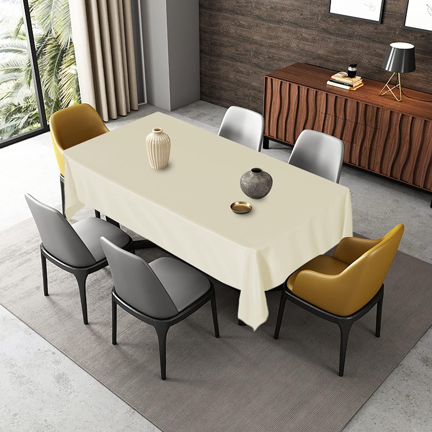 - HIGH QUALITY MATERIAL: Our tablecloth are crafted from high quality durable polyester fabric, perfect to protect and decorate your tables. The package will include 1 piece tablecloth measuring 60 W by 102 L inch Ivory tablecloth