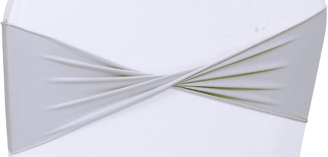 MDS Pack of 50 Spandex Chair Sashes Bows Elastic Stretch Dining Chair Bands Ties Without Slider Buckle Universal fits for Wedding Baby Shower Birthday Party Banquet Event Decoration - Light Silver