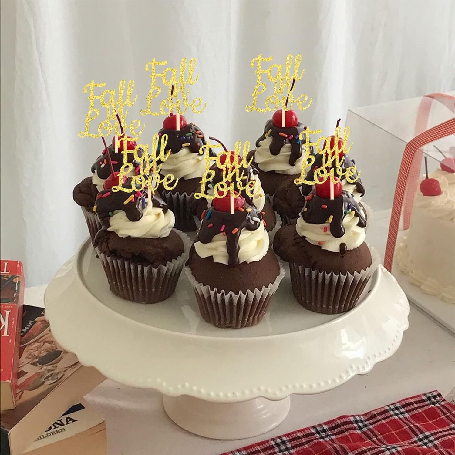 - Wide Usages ! Wide Usages ! These fall in love cupcake toppers are perfect for bridal shower theme party, wedding engagement anniversary theme party, birthday party cupcake decorations,they can make your cupcake more attractive and bring the fun to your party.You can also apply them for ice cream, fruits, cookies and other desserts.