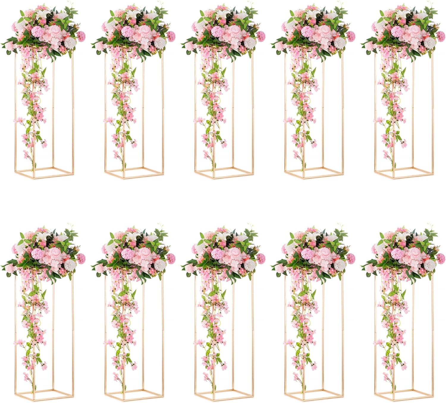 - Classic and Stable Cube Design: Inweder gold centerpieces for table adopts the classic columnar cube shape design, which is simple and elegant. You can put bouquets and other decorations on the flower stand to add romance and luxury to your wedding and event. At the same time, the columnar design can also improve the stability of the gold column flower vase. Even if you put a lot of decorations on the column flower vase, it will not fall down easily.