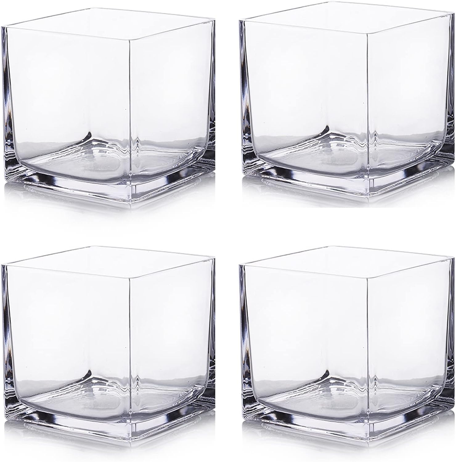 Enova Floral Set of 4 Cube Glass Vase, 5x5X5 Inch Glass Flower Vase Planter, Floating Candle Holders, Clear Square Glass Vases, Table Decorative Vase for Wedding Centerpieces, Home Office Décor