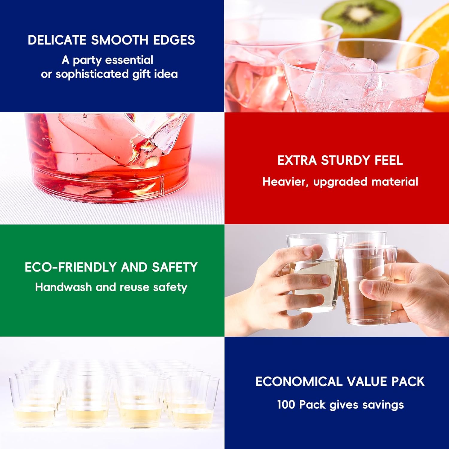 - Wide Occasions: These disposable plastic cups are perfect for wine whiskey cocktails and elite cups. Suitable for weddings, birthdays, parties, family reunions, and other activities. This set contains 100 clear plastic cups for all guests