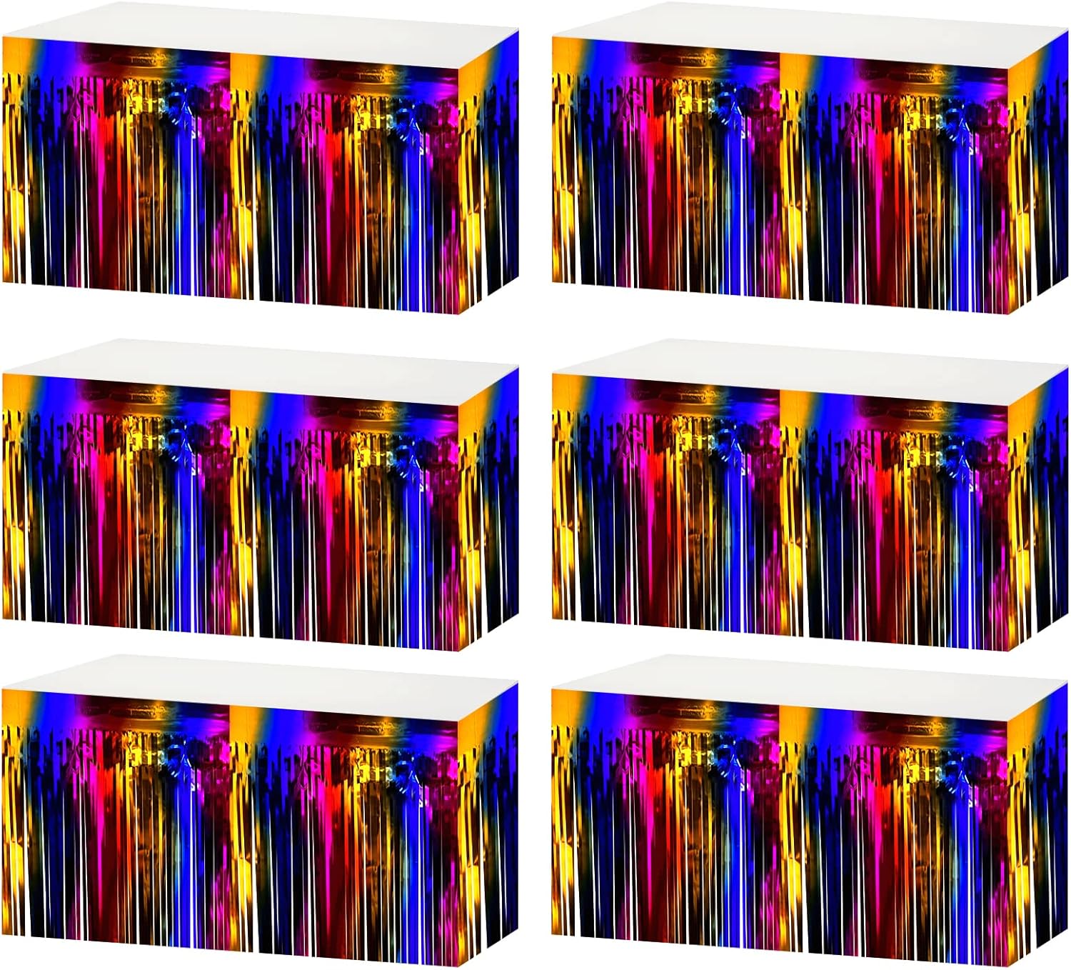 6 Pack 29x108 Inch Metallic Foil Fringe Tinsel Table Skirts Banner for Rectangle Tables Streamer Garland Curtains Backdrop for Wedding, Birthday, Parade Floats, Halloween Party Decoration(Rainbow)