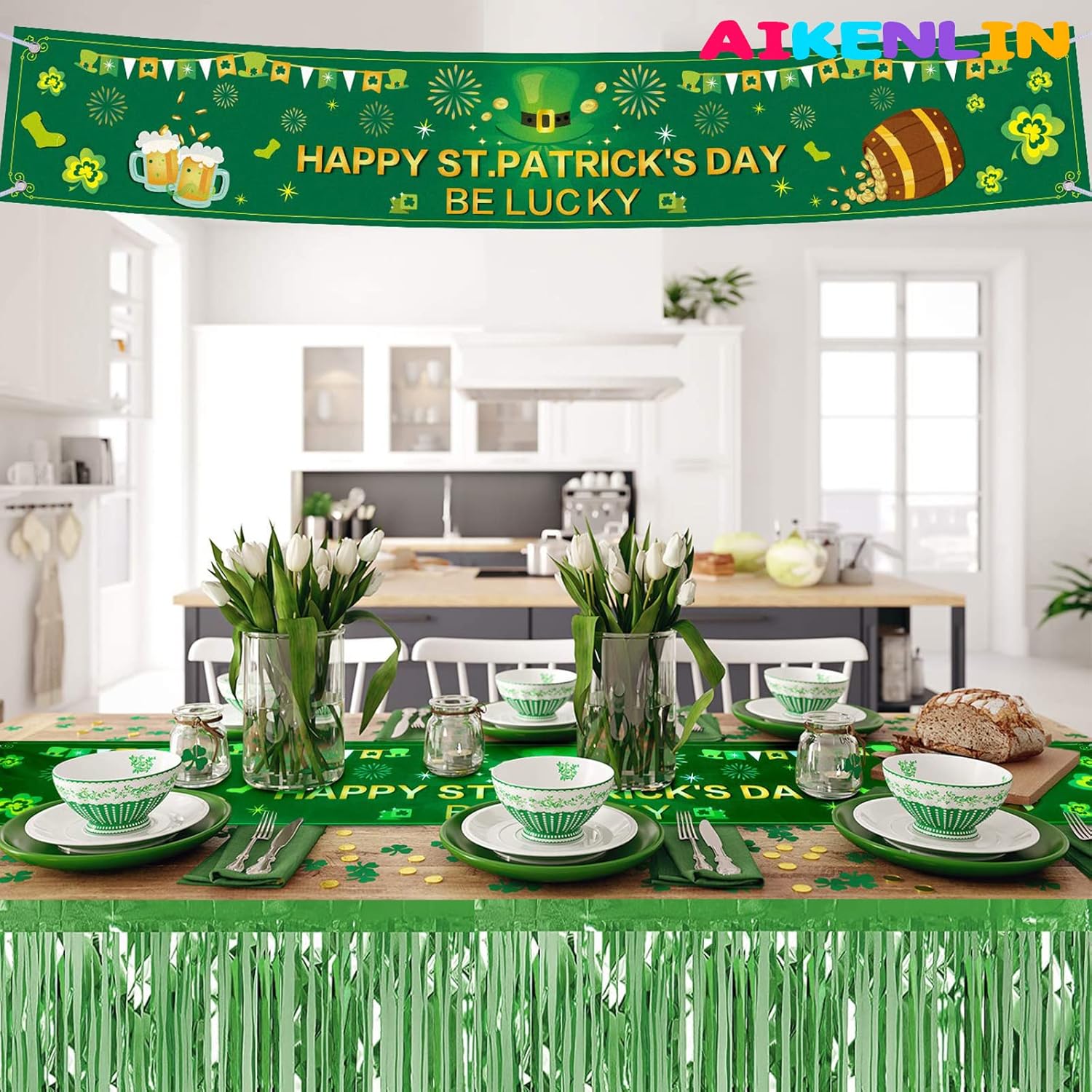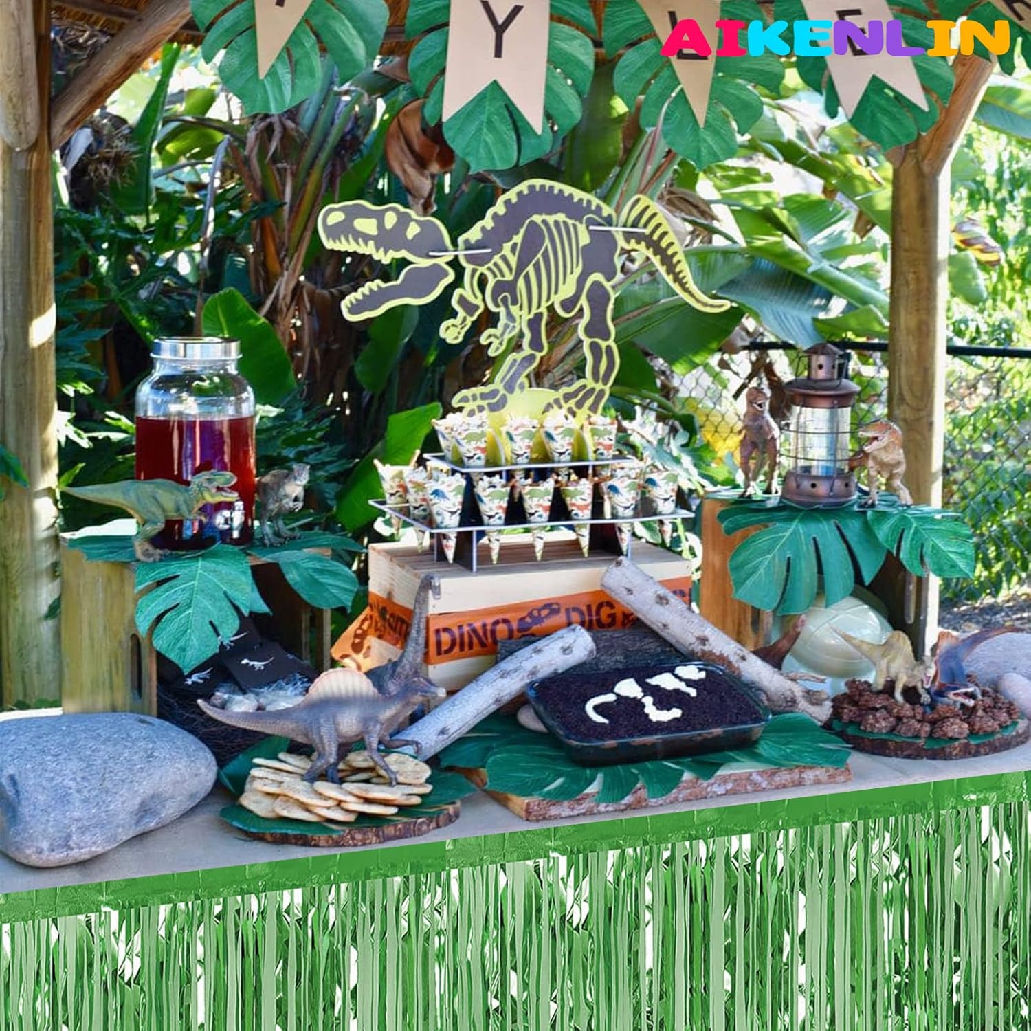 6 Pack 29x108 Inch Metallic Foil Fringe Tinsel Table Skirts Banner for Rectangle Tables Streamer Curtains Backdrop for Wedding, Birthday, Parade Floats, St Patrick Day Party Decoration(Light Green)