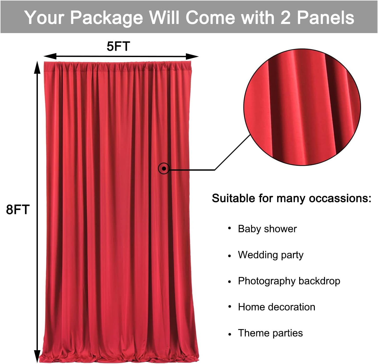 - Red Backdrop Curtain Panels: Your package will come with 2 panels photography backdrop drapes(The other accessories not included shown in the picture). Each background panels measures 5ft width and 8ft height.Entire backdrop curtain measures 10ft x 8ft.cortinas rojas para fiestas decoracion,cortinas para fiestas decoracion