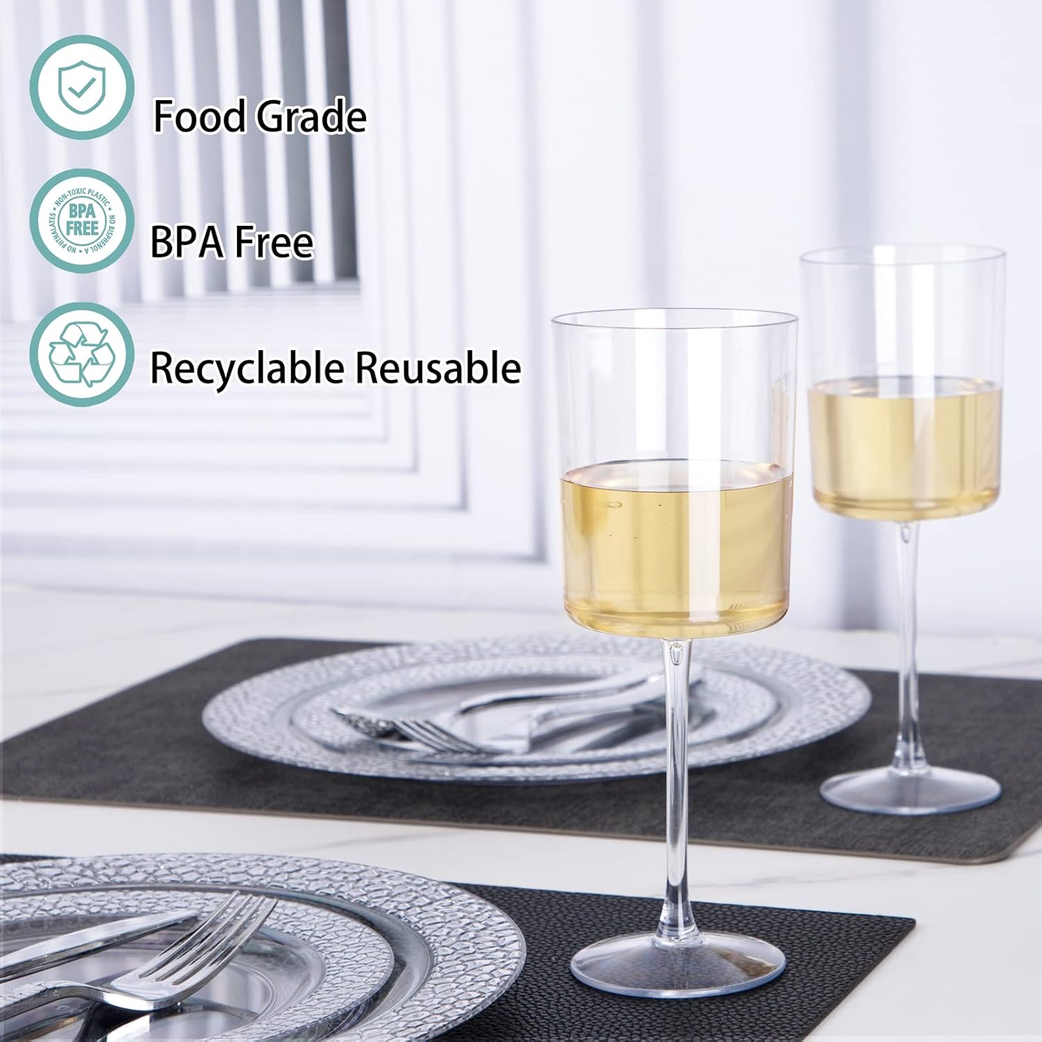 - 🥂【FOOD GRADE MATERIAL】:Our plastic wine cups are made of food grade plastic. These plastic wine glasses with stem are non-toxic and BPA free, You don't have to worry about security.