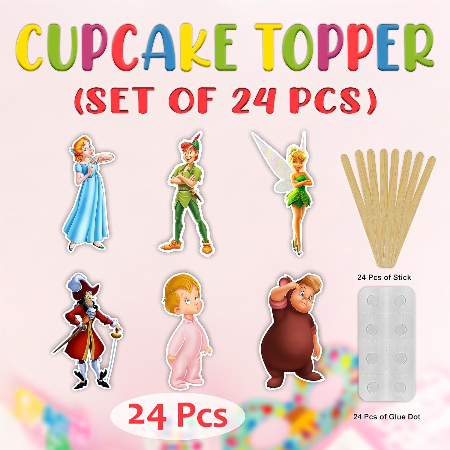 - 🧚 Magical Petr Pan Cupcake Toppers – Features Petr Pan, Tinker Bell, Captain Hook, and fairy tale details that instantly transform cupcakes into themed treats.