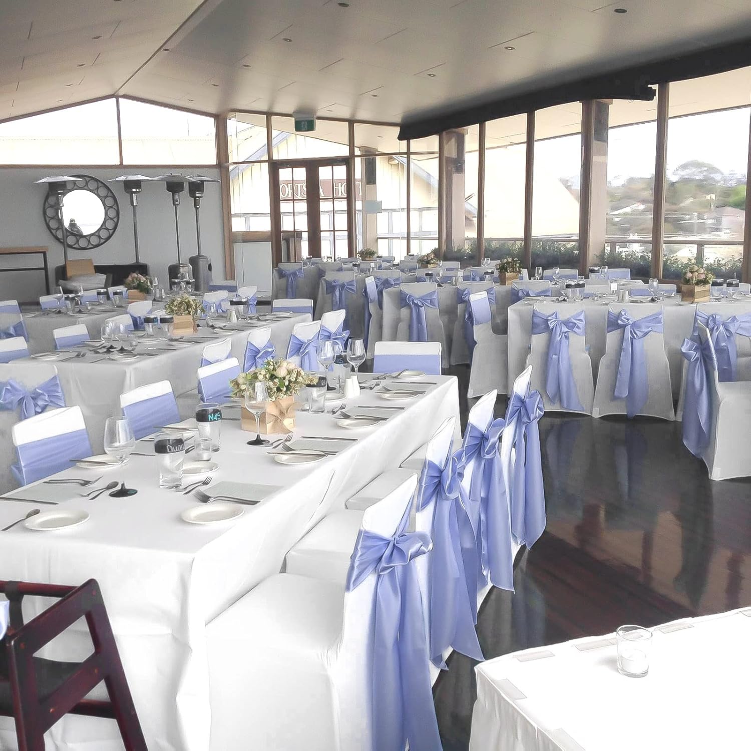 - 🔮【Package Include】Pack of 60 satin chair sash.Size: About 7" x108" or 275cm(l) x 17cm(w). Each package includes chair sashes only, without chair covers.These chair ties bring a modern twist to your chair's settings and let your chairs sparkle brightly. Satin sashes can be tied into wedding chairs, draped across any decoration, or used as attractive table runners.