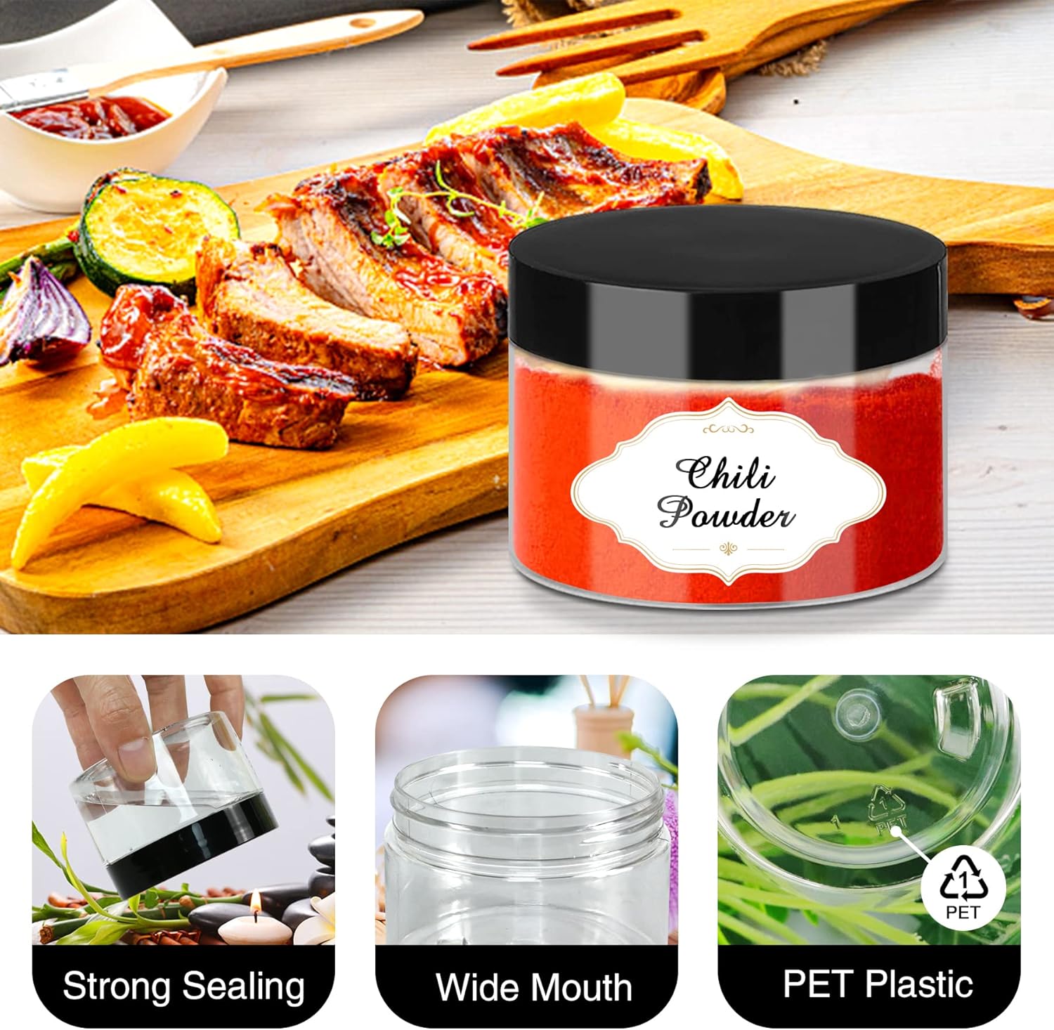 - Value Set : Totally 72 pcs 4 OZ plastic jars with black lids, you will get 72 pcs stickers for the plastic jars and 1 pc pen. These clear plastic jars meet many different uses. Our slime containers can be a great helper in solving your storage problems