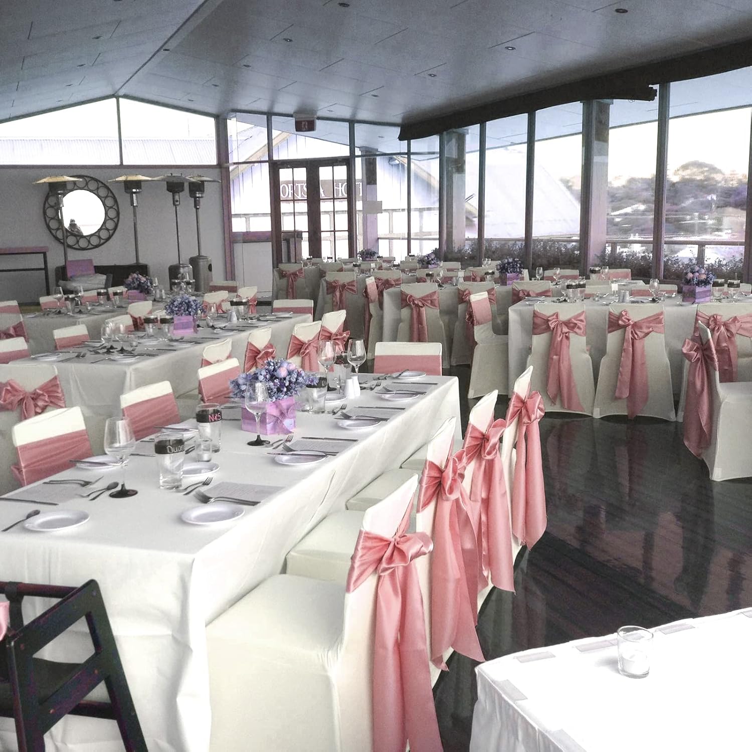 - 🌸【Package Include】Pack of 120 satin chair sash.Size: 7" x108" or 275cm(l) x 17cm(w).Each package includes chair sashes only, without chair covers.These chair ties bring a modern twist to your chair's settings and let your chairs sparkle brightly. Satin sashes can be tied into wedding chairs, draped across any decoration, or used as attractive table runners.