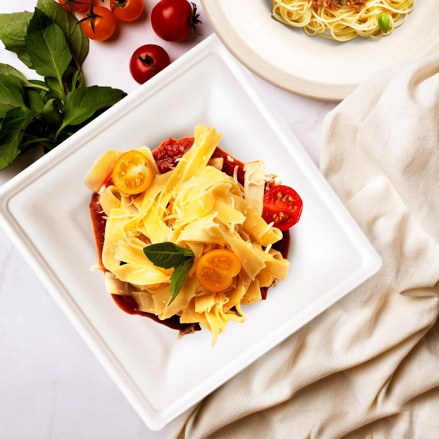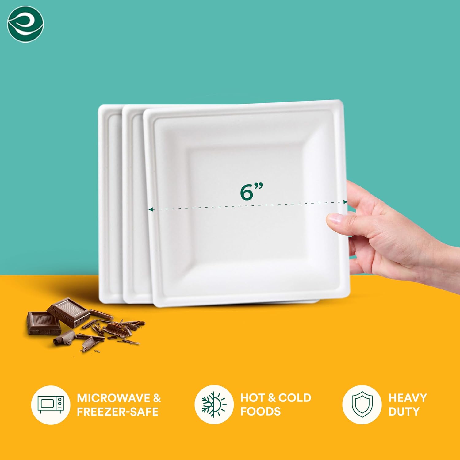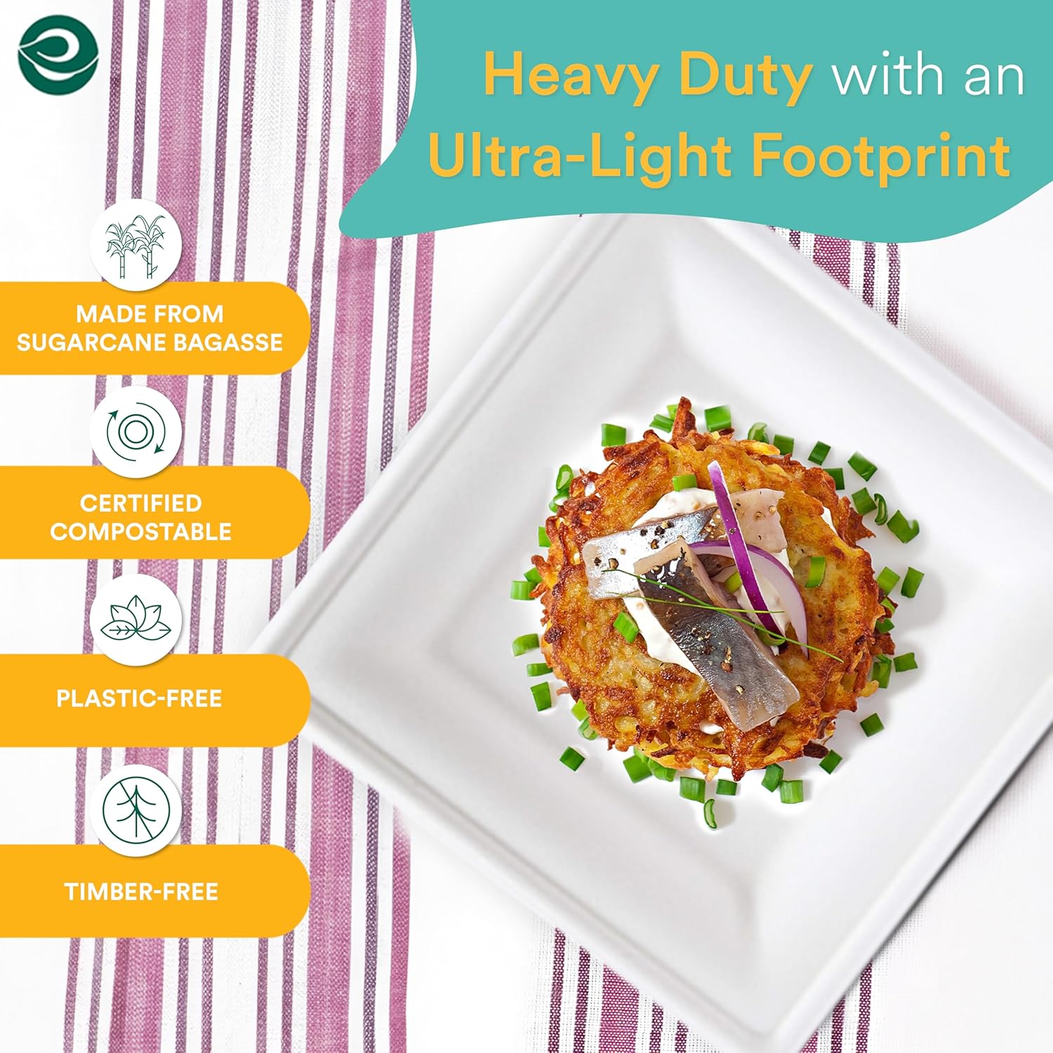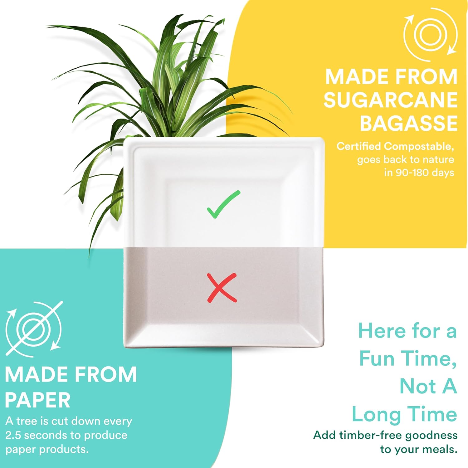- ECO SOUL Pearl White Square Paper Plates (PFAS free) | 100% Compostable Disposable Bagasse I Heavy-Duty Eco-Friendly Dinner Plates I Biodegradable Sugarcane Eco Plates