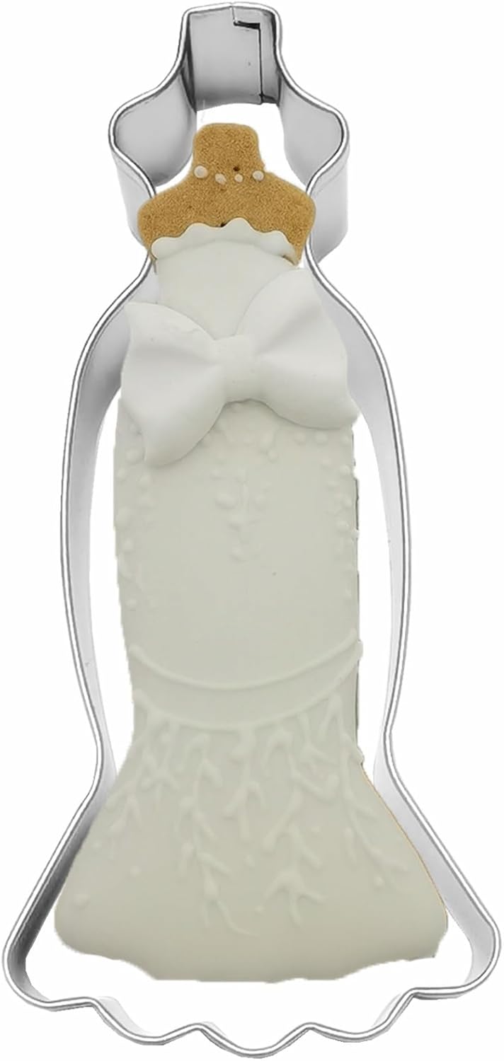 - ★【1 PC OF LARGE SIZE DRESS COOKIE CUTTER】 - Stainless steel dress cookie DIY mold, wedding dress princess dress shape cookie cutting mold, pastry biscuit cake fondant mold baking DIY gift for women, reusable and durable. Have fun to making cookie with families together.