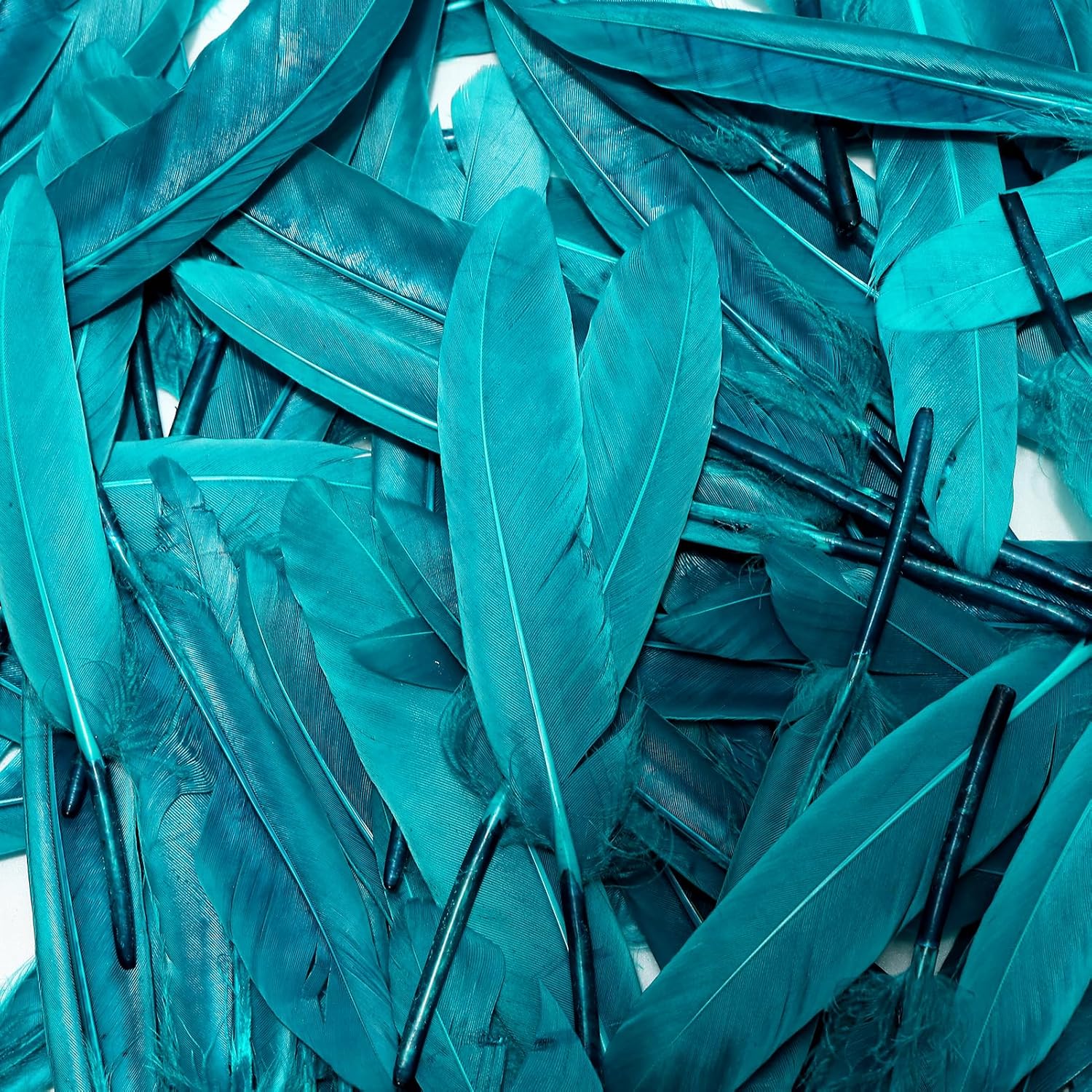 FeelfunFeather 120pcs Peacock Blue Goose Cochettes Feather Natural Bulk 4-6 inch 10-15cm for Wedding Party Christmas Decorations DIY Crafts Goose Cochettes Feather