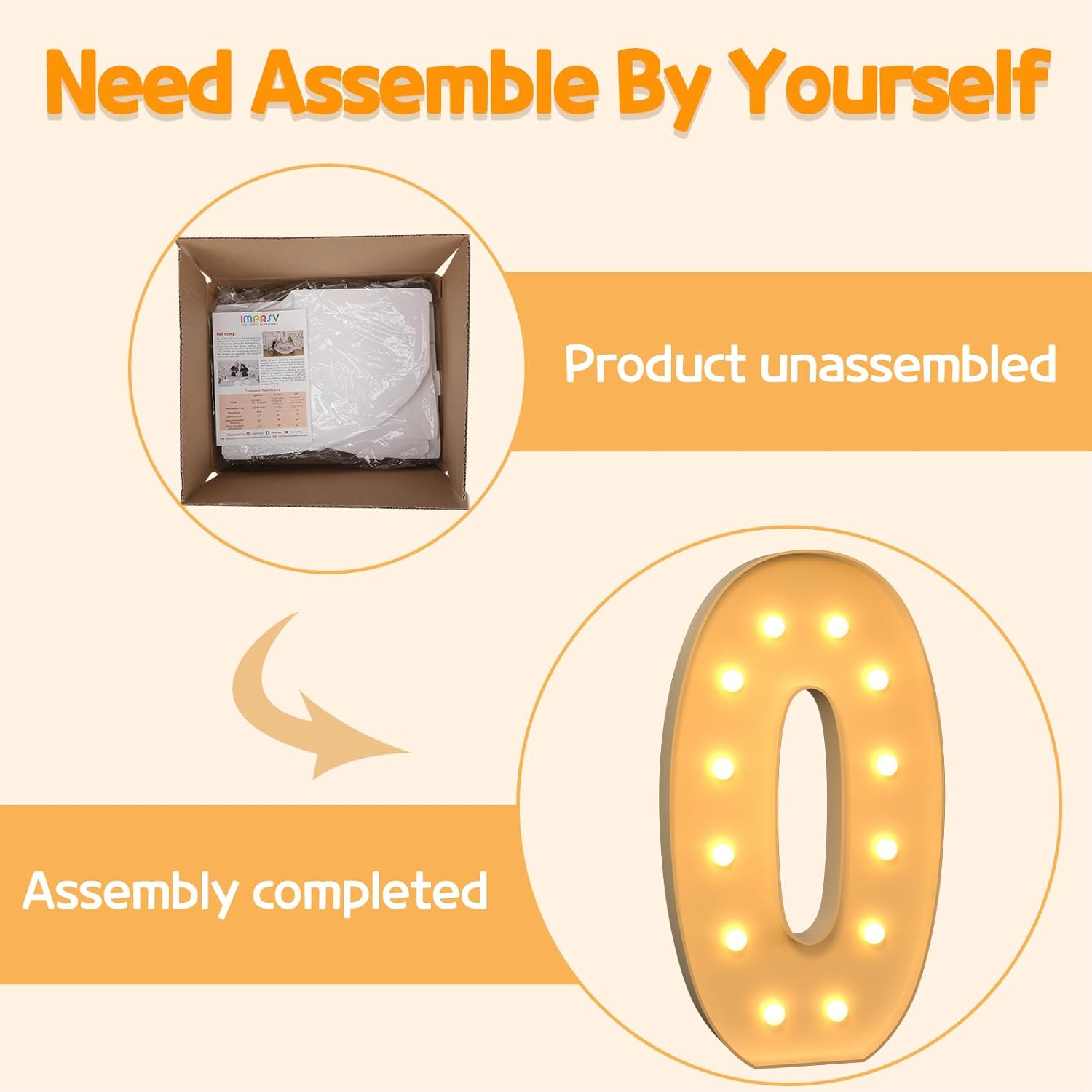 - Assembly Required: Our large marquee letters is made from foam board and easy to assemble with our splicing mode. Just follow the numbered instructions to align and insert the bottom plate, and reinforce it with a hot glue gun. Then, you're done!