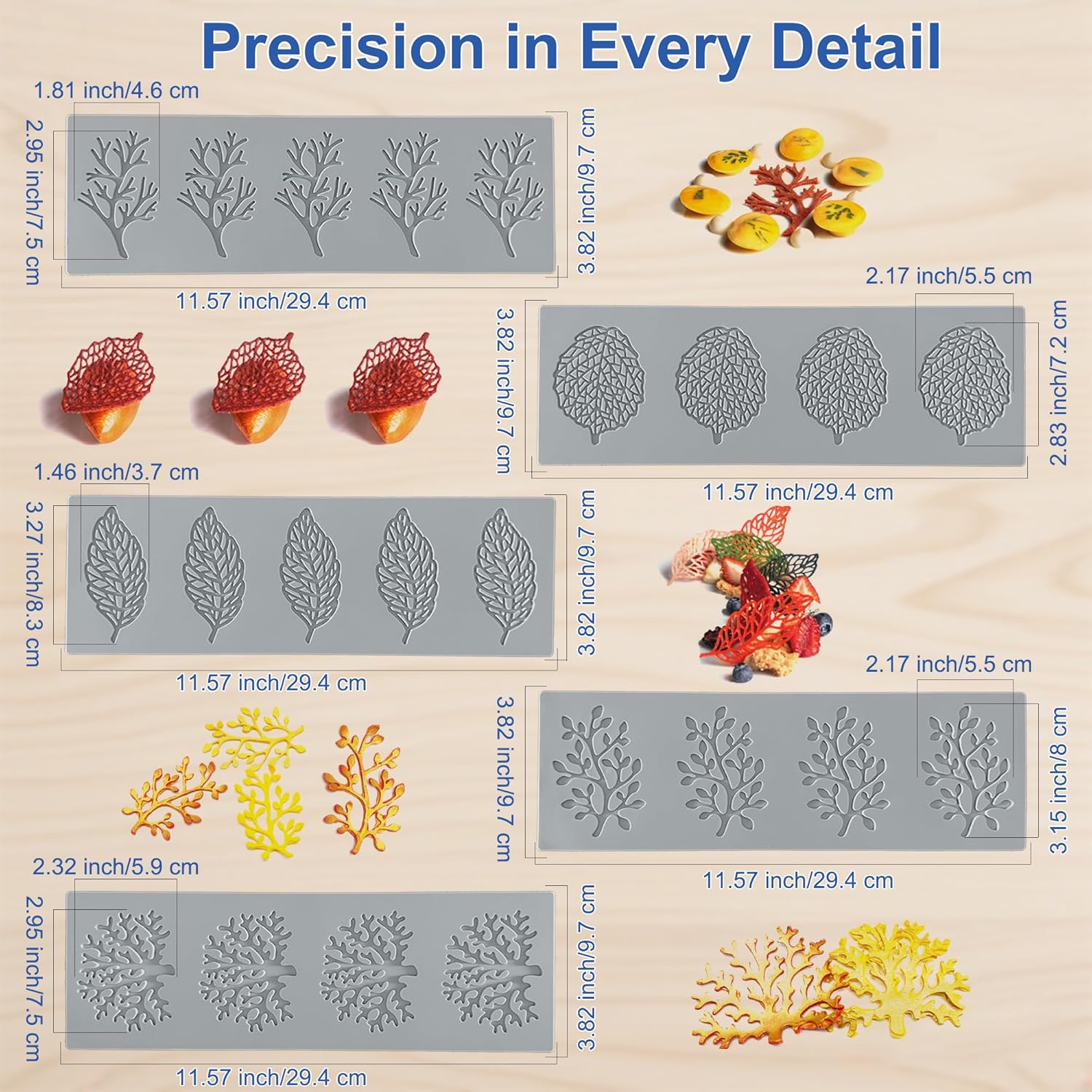 7Pcs Leaf Silicone Fondant Molds with Dough Scraper Silicone Spatula, 3D Coral Branch Leaf Chocolate Molds, DIY Baking, Sugar Craft, Wax, Gum Paste, Cupcakes, Clay