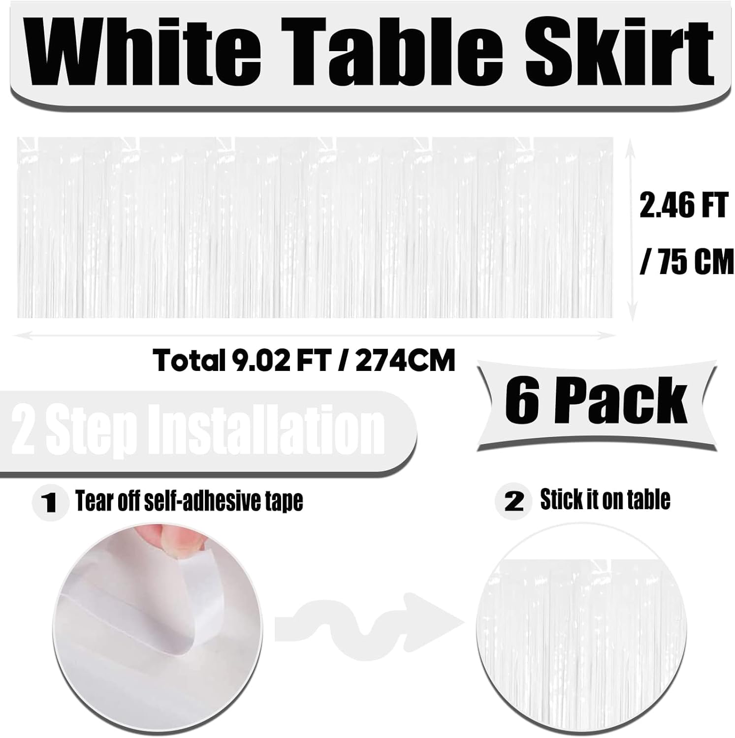 - 【Easy to Use】Each metallic fringe table skirts comes with self-adhesive tape on the top for easy attachment to your wall or table, just peel off the tape and then stick, easy and fast to install.