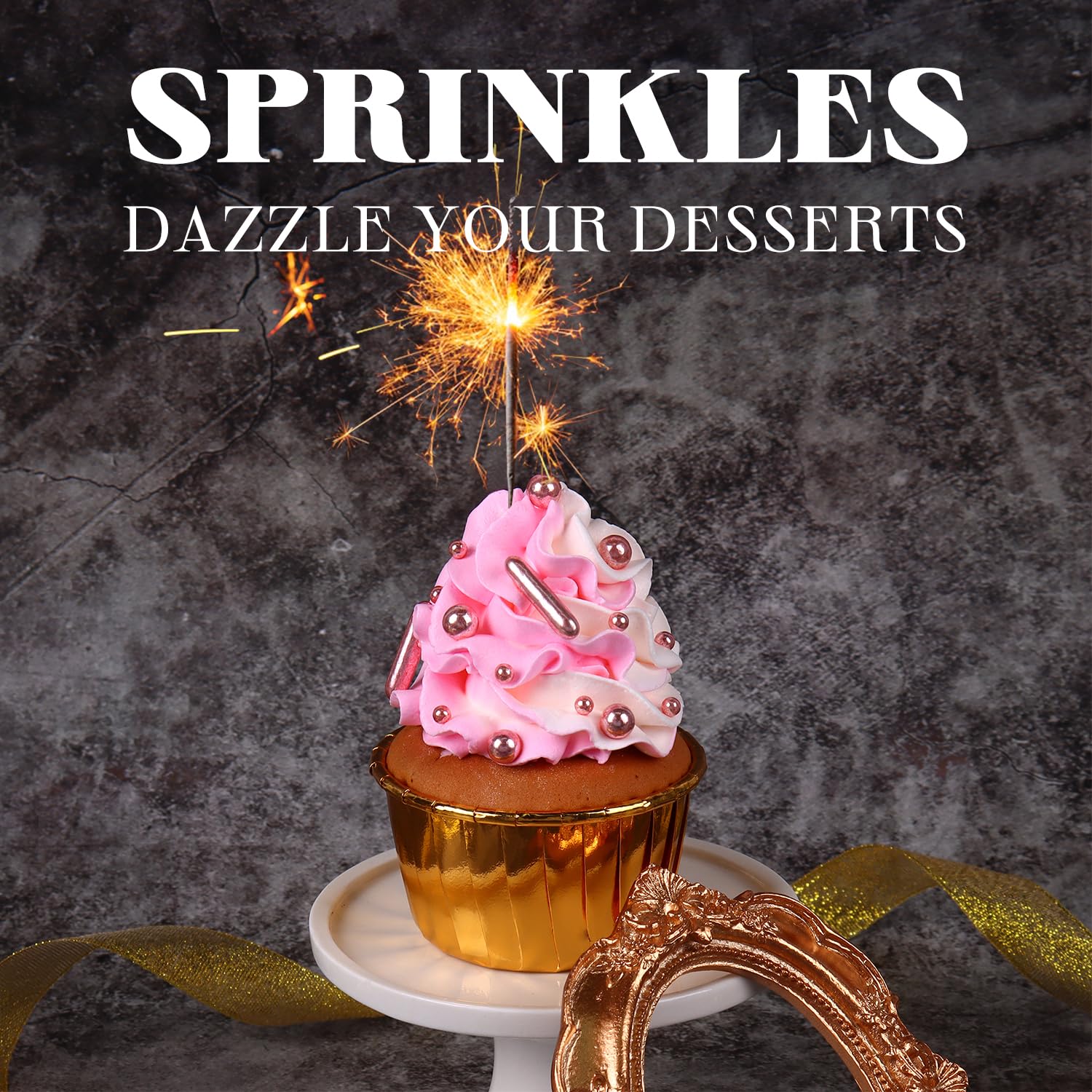 Rose Gold Sprinkles for Cake Decorating 7 Ounces, Rose Pearl Sugar Cupcake Toppings, Cookies, Ice Cream, 7Ounces Cake Decorationss Baking, Perfect for Wedding, New Year’S Eve, Christmas Party