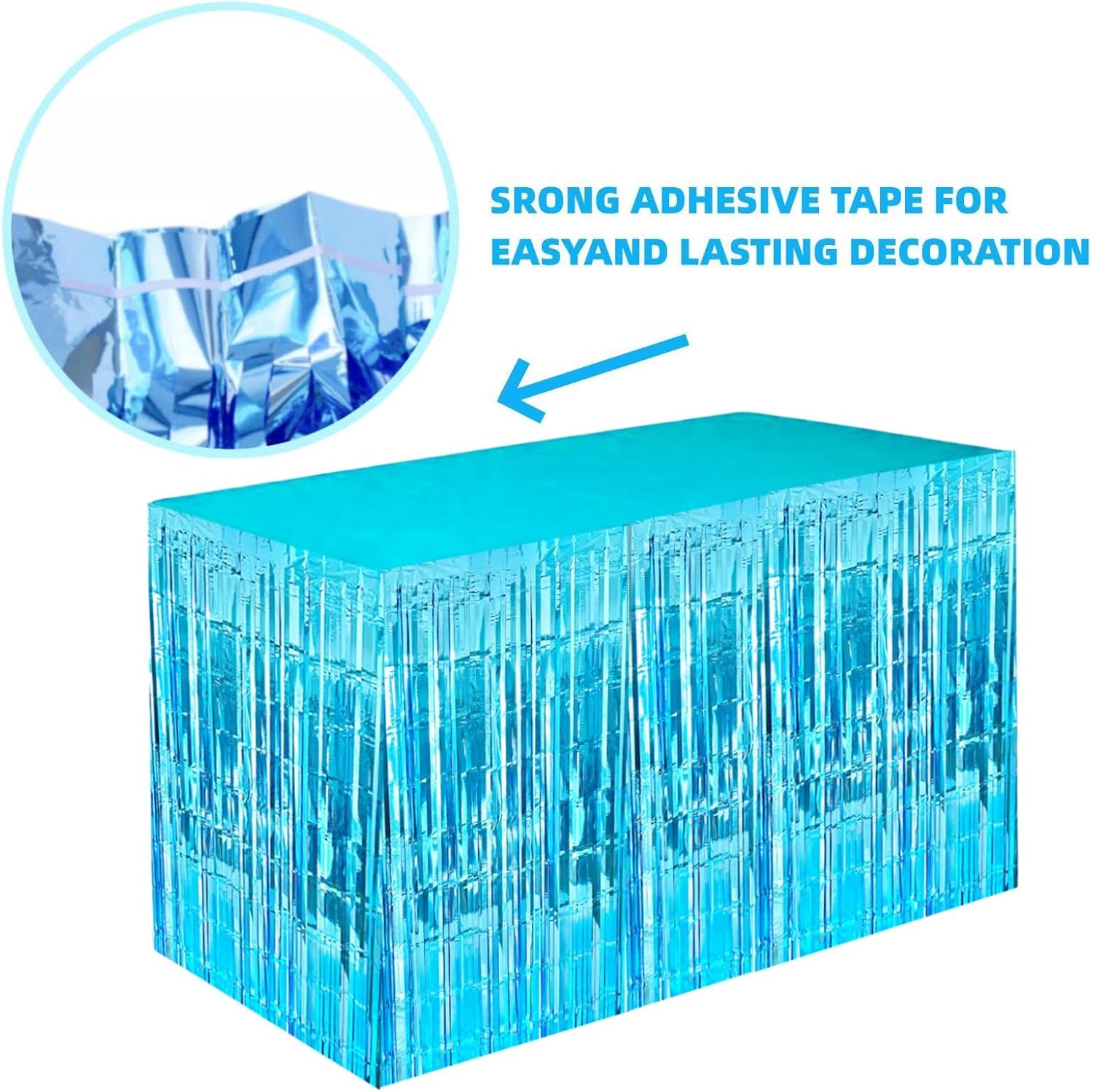 - 【EASY TO INSTALL】Each metallic fringe table skirts comes with self-adhesive tape on the top for easy attachment to your wall or table. just peel off the tape and then stick, easy and fast to install