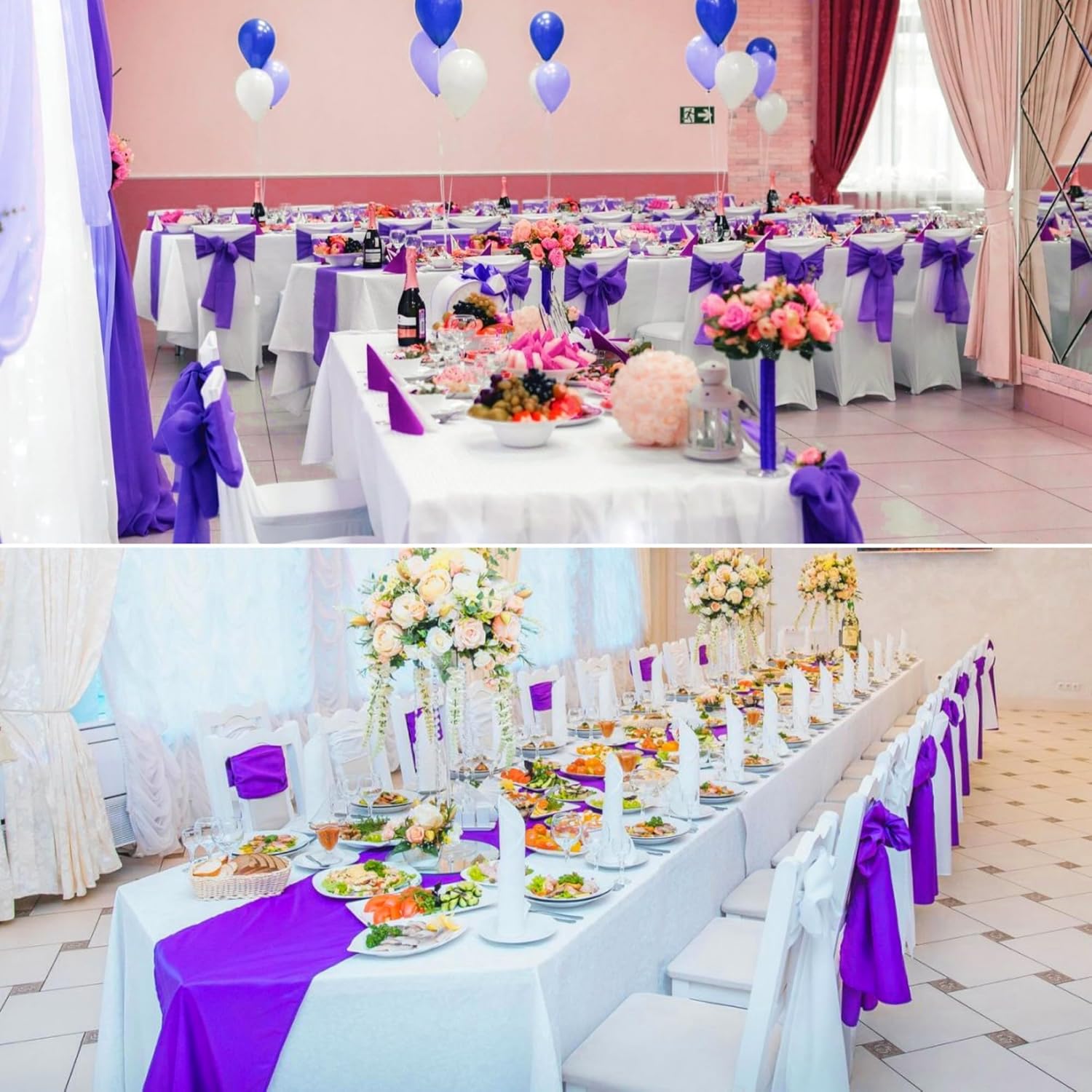 - 【Widely Use】The elegant satin wedding party chair cover sashes can be tied into chairs or used as table runners, perfectly match with other party decorations. The multifunctional chair sashes are perfect for various events, such as wedding, receptions, banquets, birthday party, bridal and baby shower, sweet heart, engagement ceremony, dinners, candy buffets, dessert tables, weddings arch, dance wear, celebrations, ceremonies, exhibition events, theme party, Christmas, Thanksgiving, Halloween