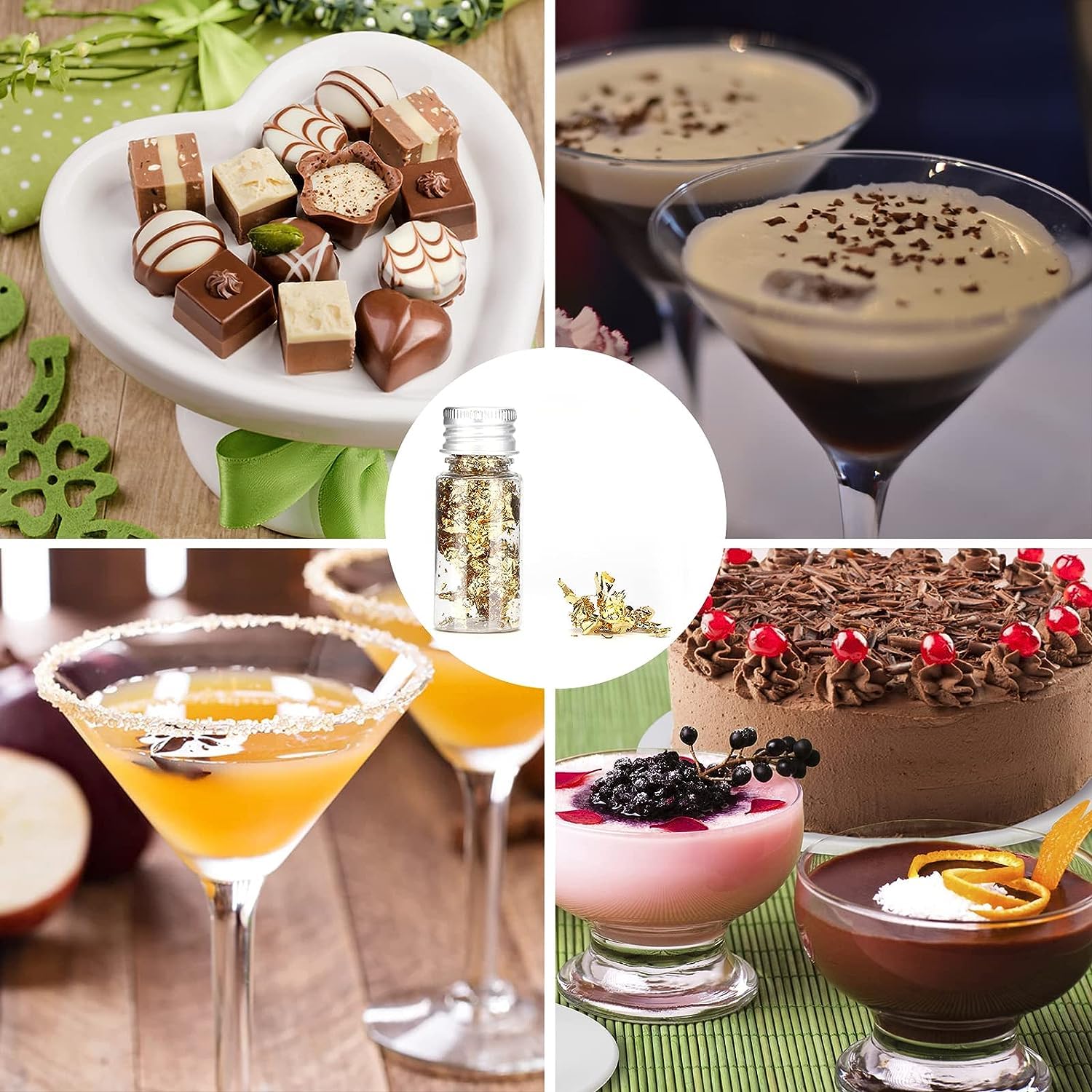 - 【Perfect Decoration For Food】Edible gold flakes is a perfect decorative items, can be added to coffee, tea, hot pot, seasonings, cosmetics, bath agents, etc. Gold leaf fakes beautiful and stylish, gold flakes for crafts can be widely used in families, bars, restaurants, etc.