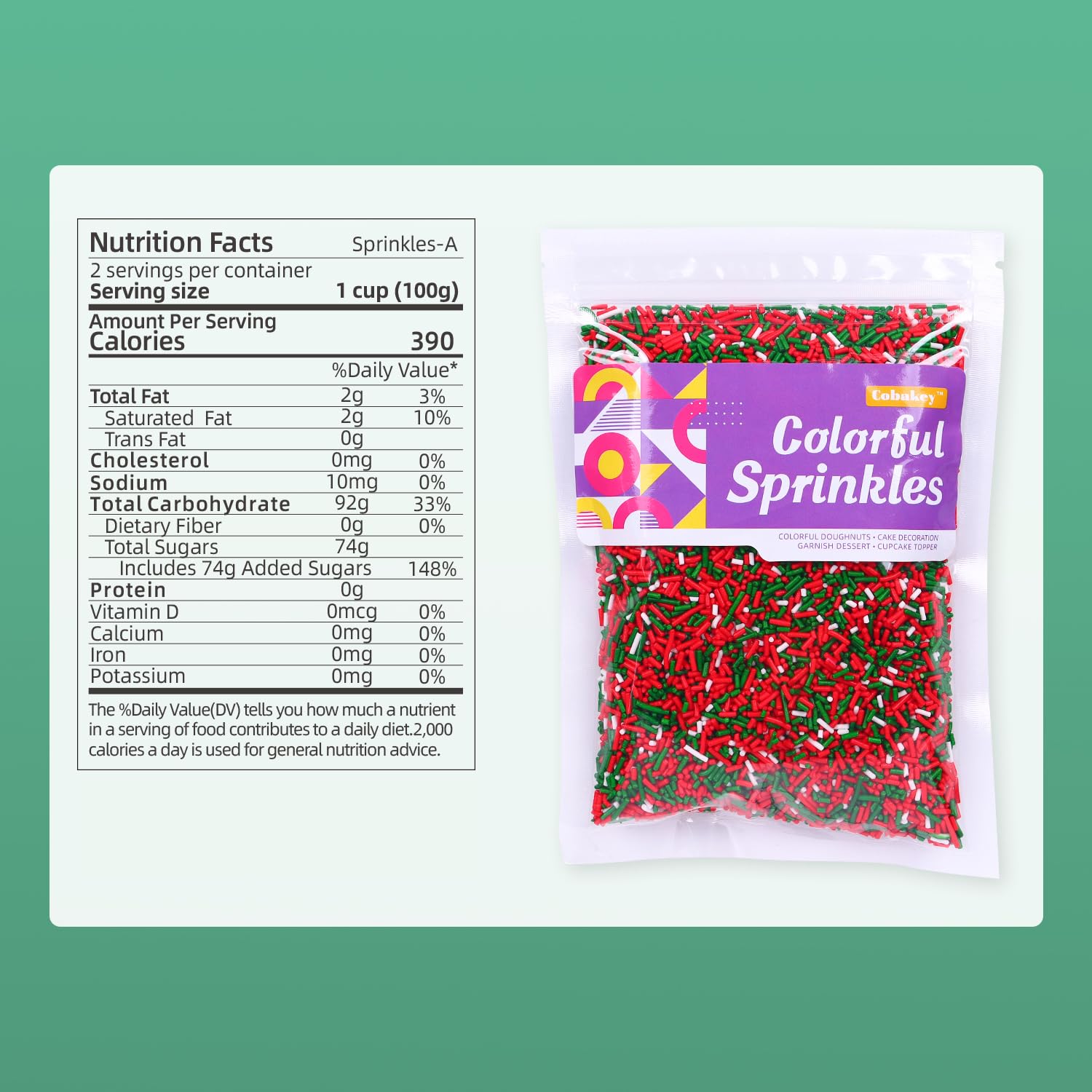 Christmas Sprinkles Bulk for Cake Decorating 7 ounce Holiday Jimmies Red and Green Sprinkles for Xmas Party Cupcake Toppers Cookie Ice Cream Decorations Celebrations