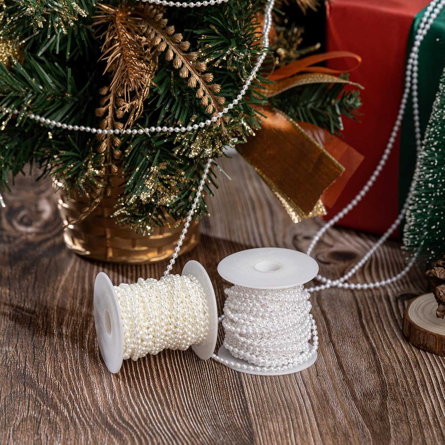 3mm Millet Beads Crafts Faux Pearl Beads Garland Pearl Bead Roll Strand of Pearls to Decorate Floral Centerpieces Wedding Party Favor Christmas Tree(33 Feet White)