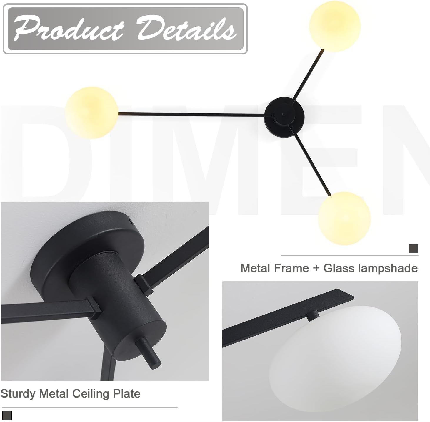 - 【Easy to Assemble & Install】The black semi flush mount ceiling light fixture is easy to install and needs to be hardwired. Detailed instructions and hardware accessories of this bedroom flush mount ceiling light are provided for quick and easy installation