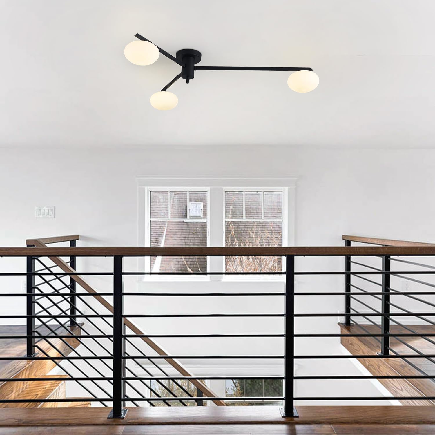 - 【3-Light Black Chandelier】 This glass globe ceiling light fixture,it's made of high-quality metal and high light transmission milk glass globe shade,with smooth lines,minimalist style,brings classy looking to your home, idea for indoor decor. And this Semi flush mount ceiling light fixtures fits any home decor style, creating a comfortable in your house.Perfect for your bedroom,dining room,living room,hallway,kitchen, beauty salon,bar,coffee house,etc
