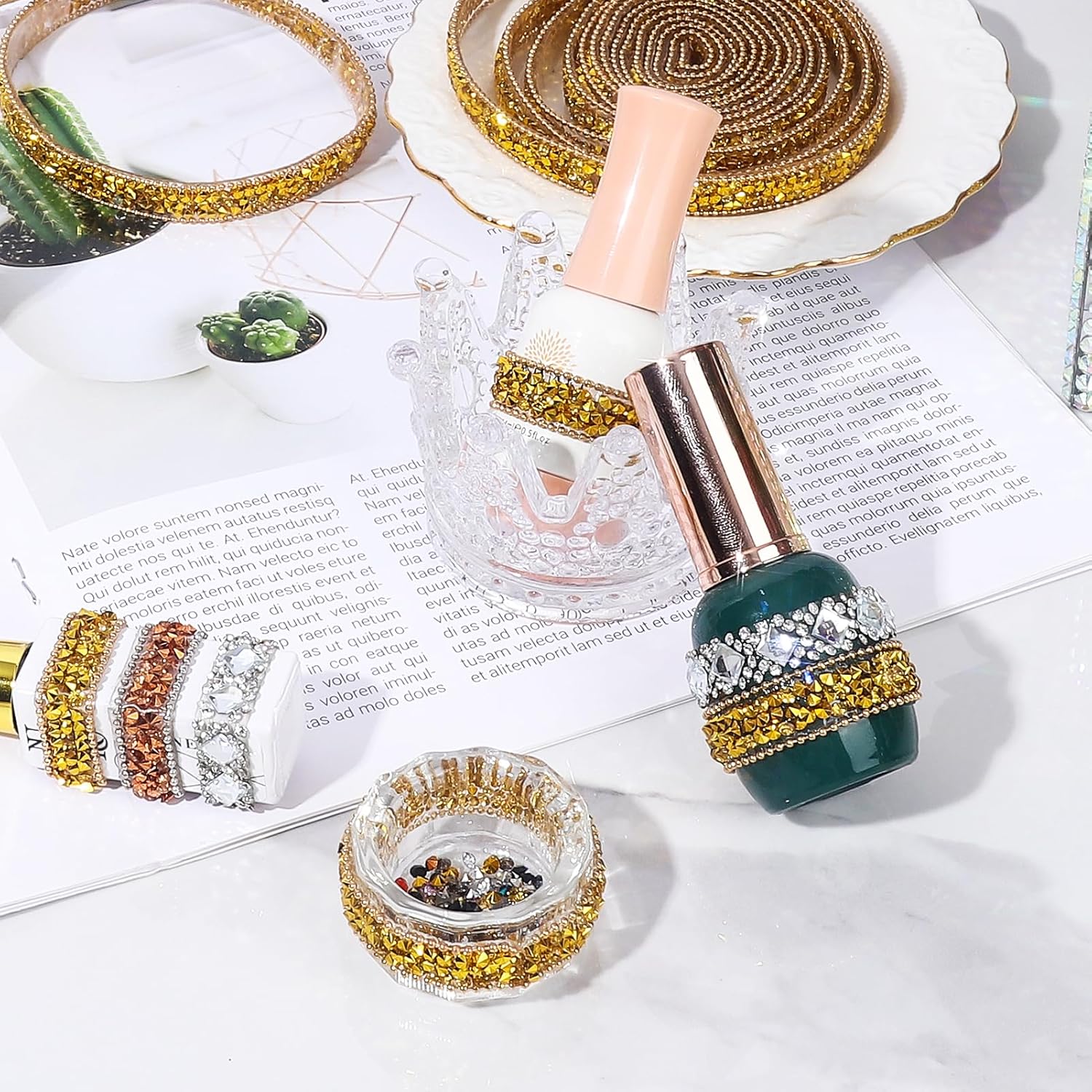 - Gold Rhinestone Ribbon: 1 roll of self-adhesive rhinestone ribbon Sticker, approx 3 yards in length, 1cm/0.4inch in width. (PACKAGE CONTENT)