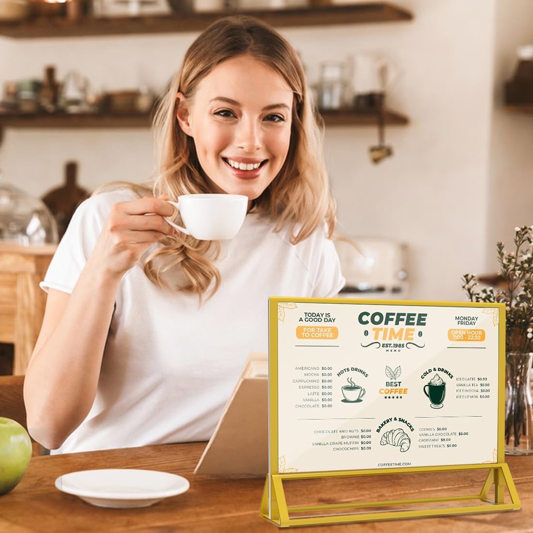 - 【Double Sided Display】This 6X4 gold sign holder is designed with a vertical double sided stand that clearly and efficiently displays pictures and posters