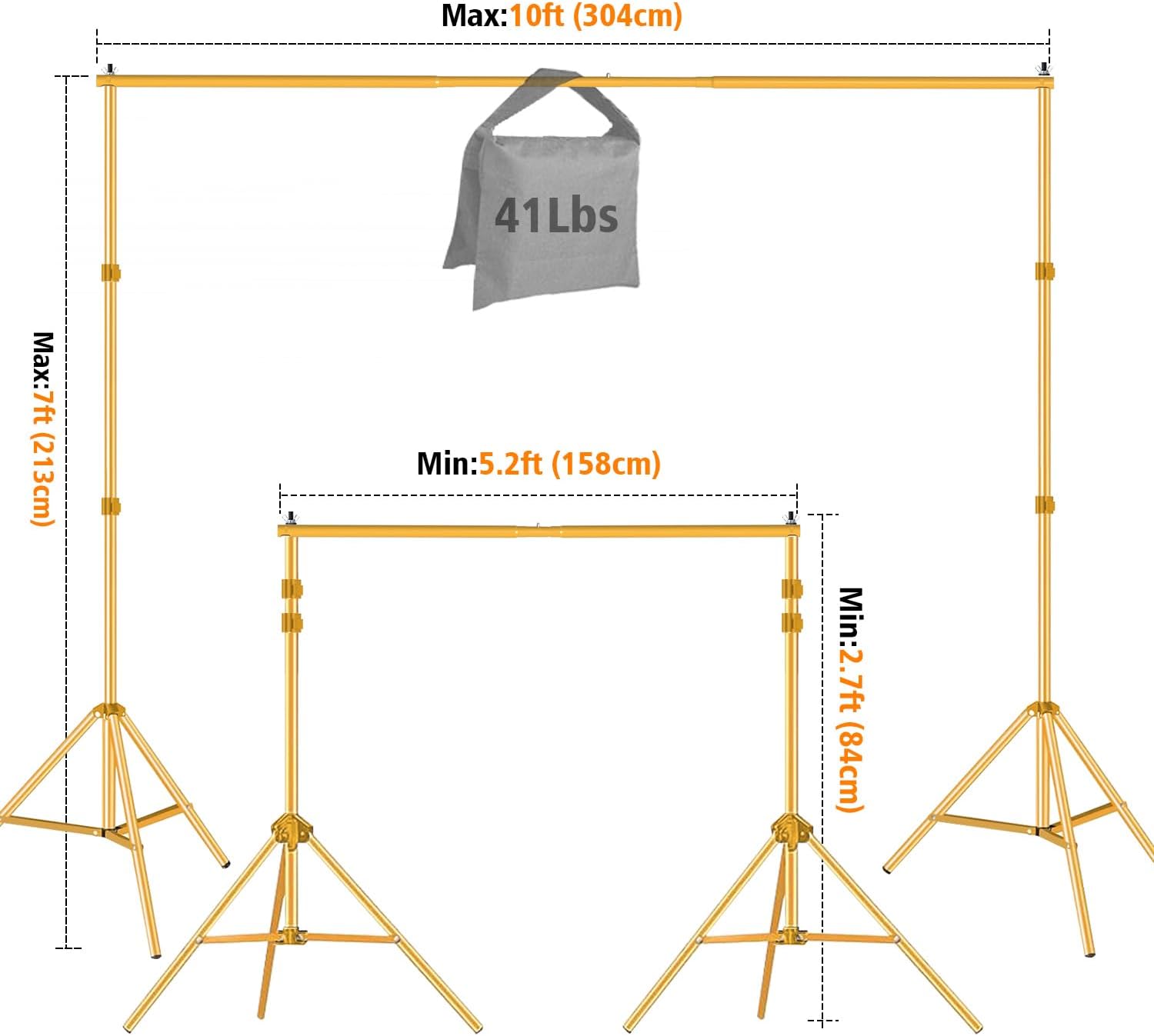 10ft x 7ft - Titanium Gold Adjustable Photography Backdrop Support System Photo Video Studio Background Stand Kit with Carry Bag for Portrait & Studio Photography