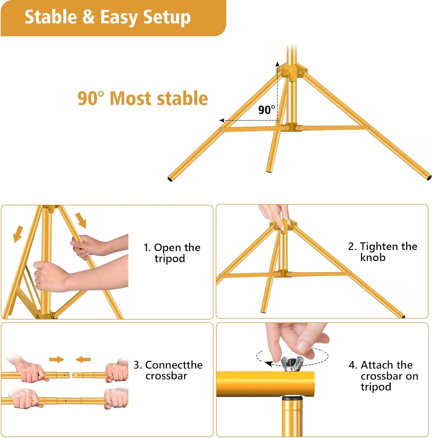 - Adjustable Height & Width: With adjustable height (2.6ft/0.8m–7.0ft/2.1m) and width (5ft/1.52m–10ft/3m) Solid Safety 3 Legs Stages,Aluminum alloy construction Supporting Stands,Cross bar consists of Four sections, making it simple to adjust the width.