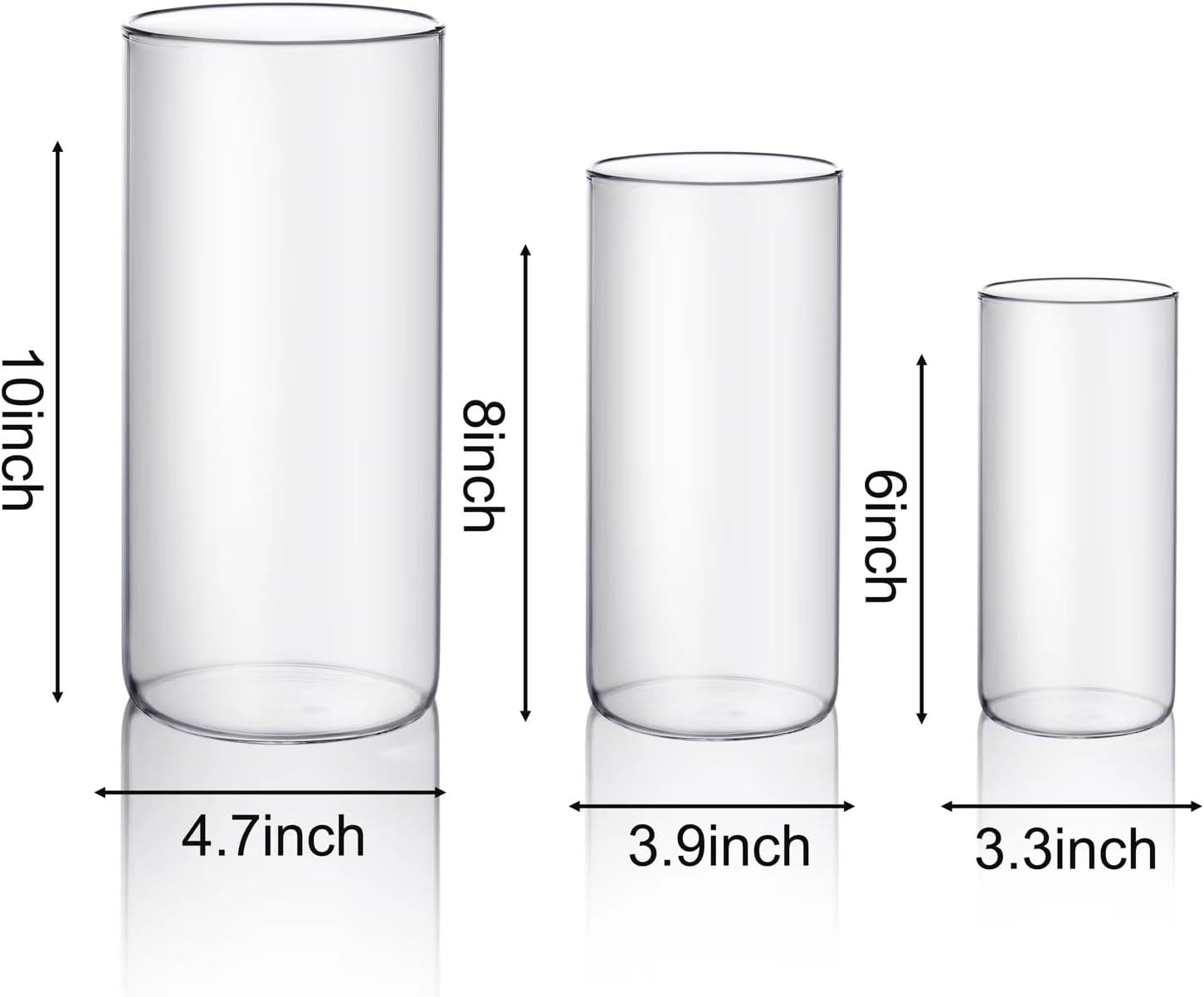 - 3 Different Sizes Candle Holder: The set glass candle holder includes 3 different size¡ªLarge Size: width 4.7'' x height 10'', Medium Size: width 3.9'' x height 7.8'', Small Size: width 3.3'' x height 5.9''