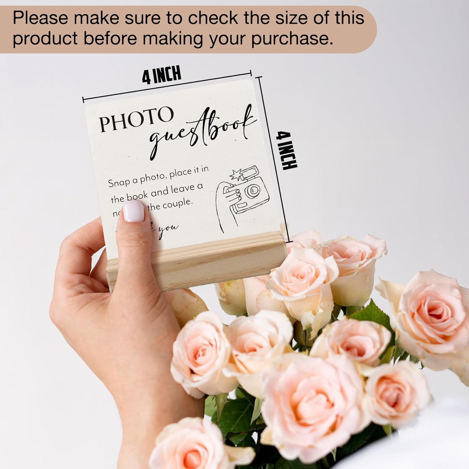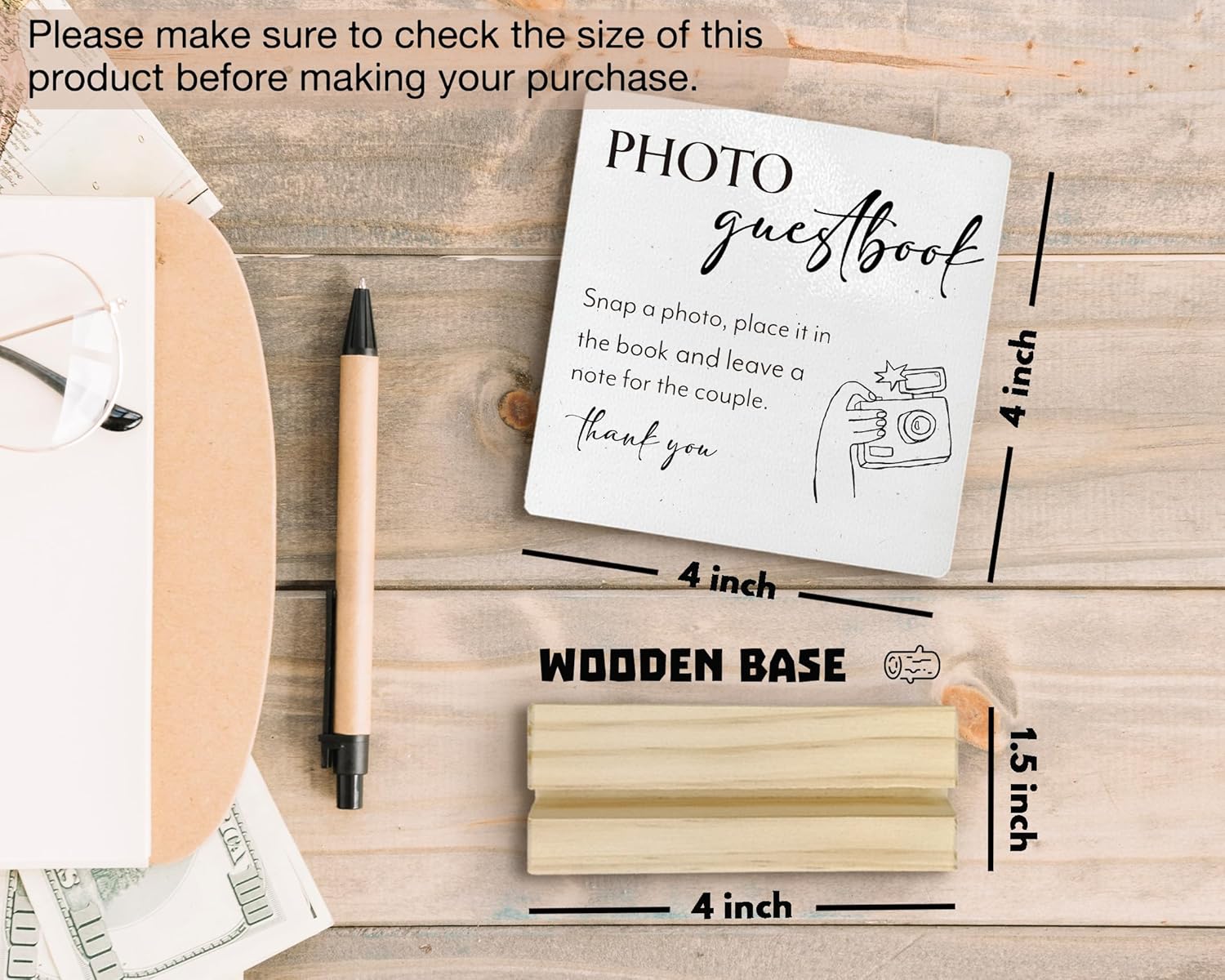 Wedding Guestbook Desk Decor, Wedding Guest Book Sign Wood Plaque, Guest Book Signs forWedding, Photo Guestbook WeddingWooden PlaqueSign with Wood Stand for WeddingReception Decor