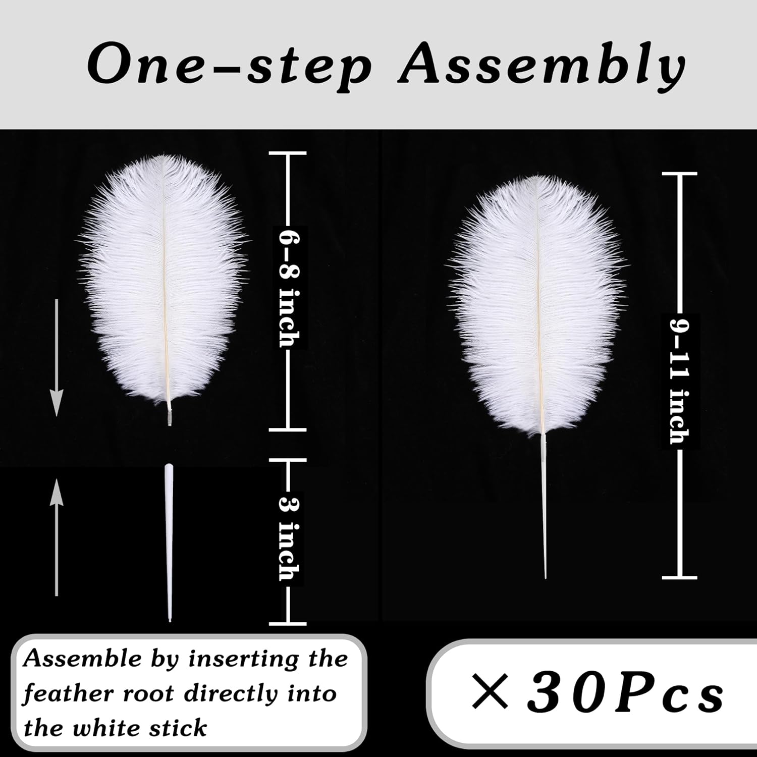 - Easy to Assemble: The craft ostrich feathers can be inserted directly into the white sticks without the need for tape to assist in fixing them, convenient and quick, get a better presentation with the same length of craft ostrich feathers