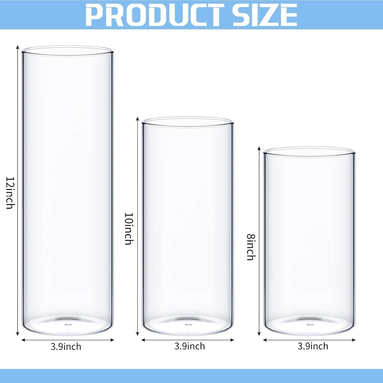 - Assorted Size: per glass cylinder vase for centerpieces measures 3.94 inch in diameter, and there are 3 kinds of height available, 8 inch, 10 inch and 12 inch, to meet your decoration needs for various occasions