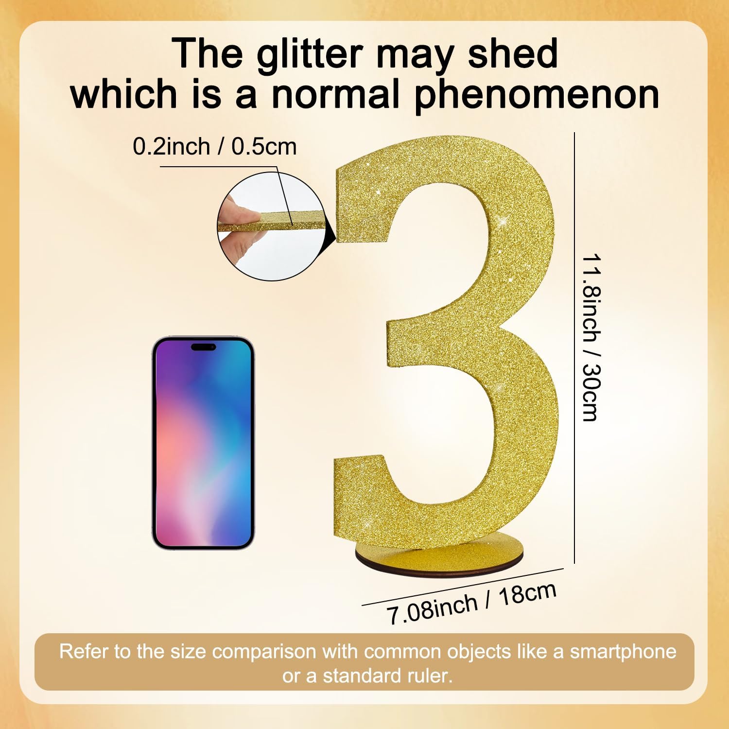 TONIFUL 11.8 Inch Gold Glitter Numbers Table Centerpieces 0-9 Birthday Party Decorations,Shining Gold Digital 3 for Birthday Party,Wedding,Bridal Shower,Engagement,Photo Shoot,Anniversary
