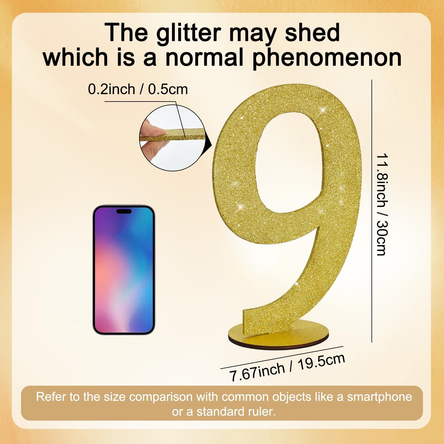 TONIFUL 11.8 Inch Gold Glitter Numbers Table Centerpieces 0-9 Birthday Party Decorations,Shining Gold Digital 9 for Birthday Party,Wedding,Bridal Shower,Engagement,Photo Shoot,Anniversary