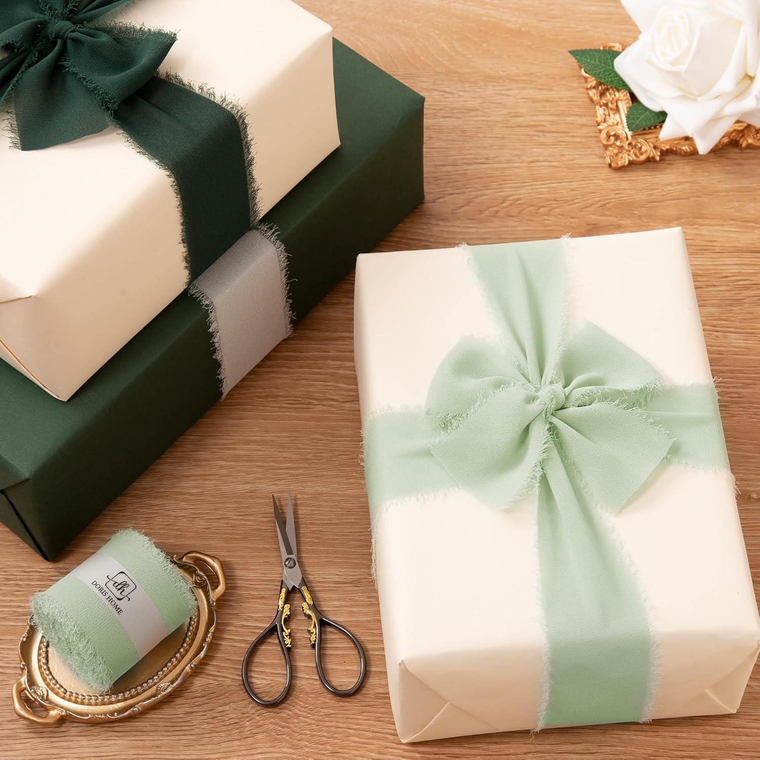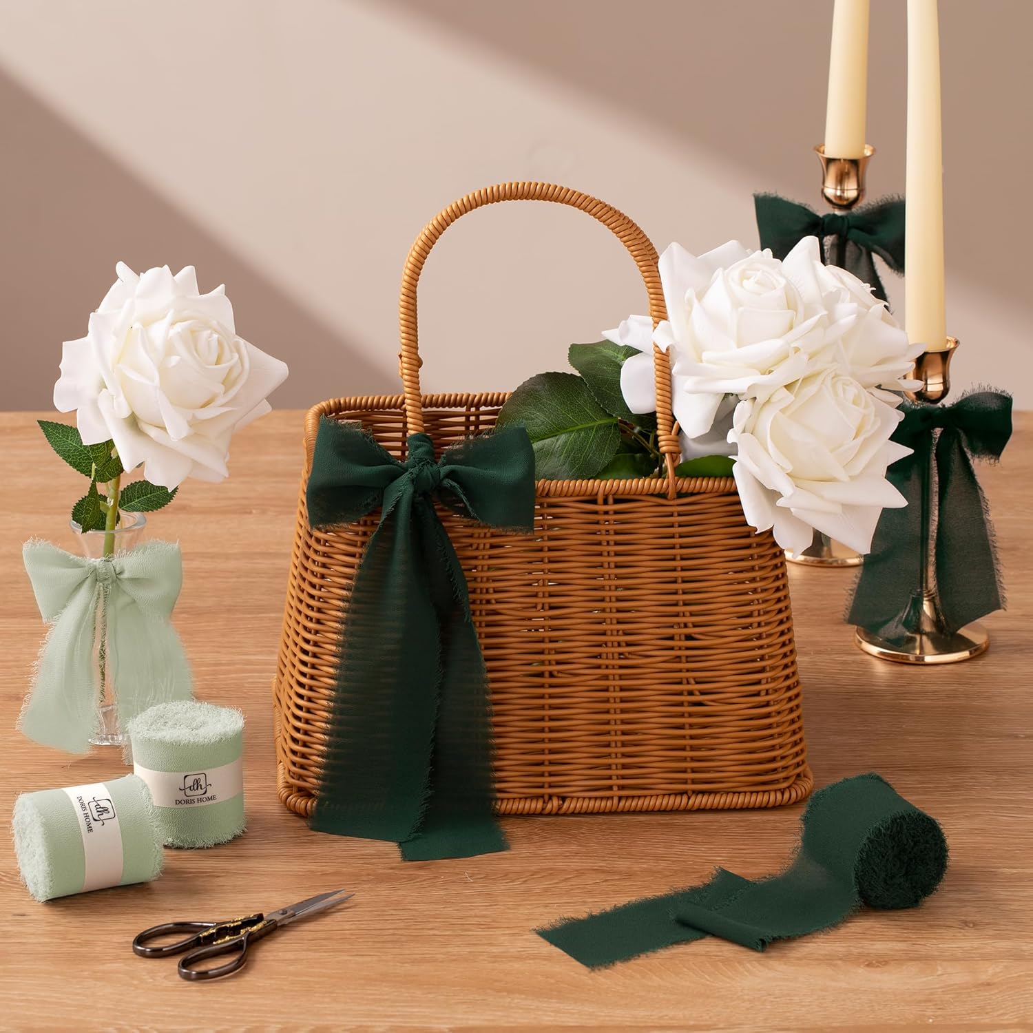 - 【Multiple Applications】This chiffon silk ribbon is great for gift wrapping, wedding decorations, wedding invitations, birthday parties, holiday celebrations, bridal showers, newborn photography props, wedding aisle backgrounds, boutonnieres, flower girl baskets, bouquet wrapping ribbons, Easter baskets, and even Christmas gift wrapping. Its elegant appearance makes it an ideal choice for bohemian or rustic DIY projects.