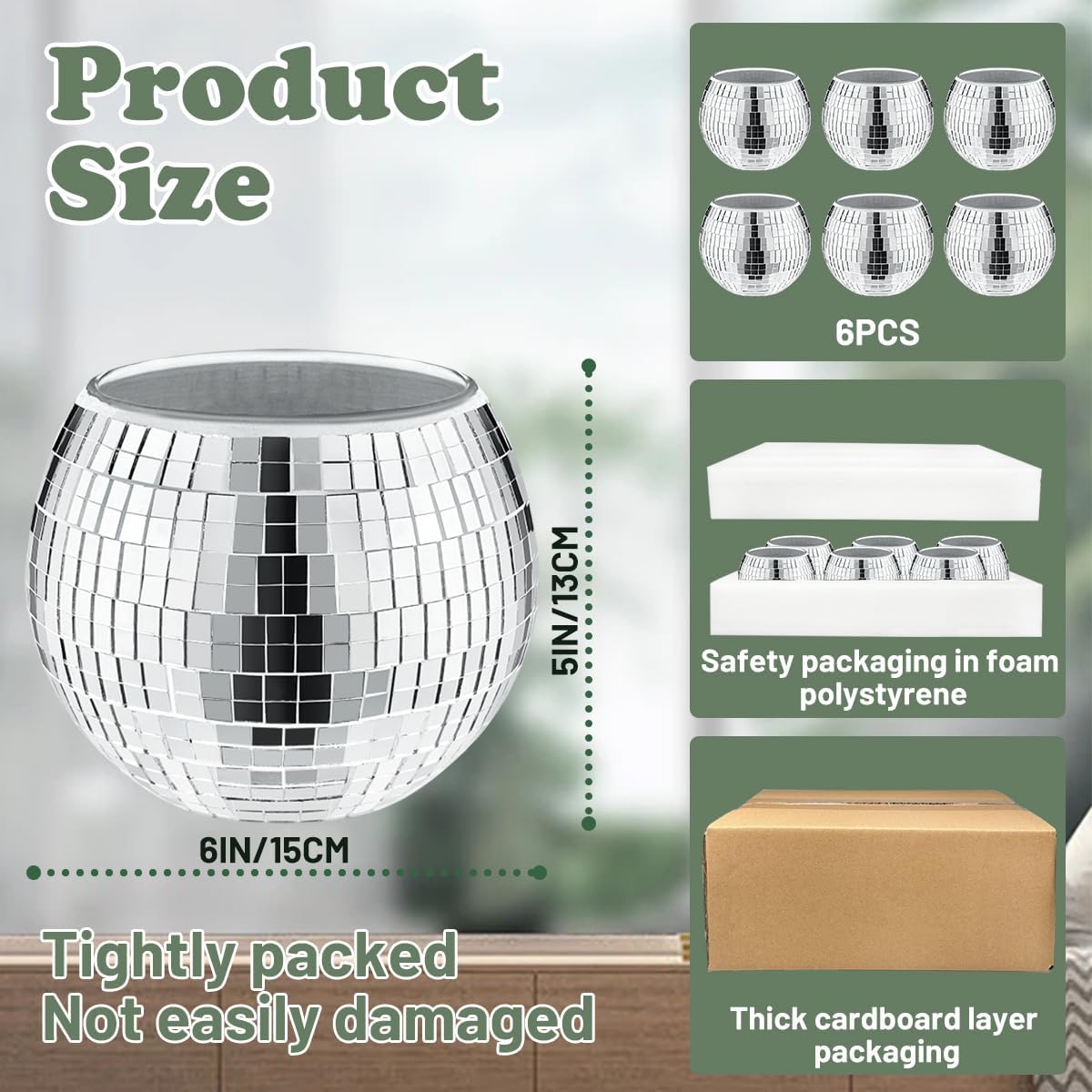 - Package Contents:Contains 6 disco ball vase, the size of each one is 5*6 inches, more than enough quantity for you to decorate any scene; Separated in bubble wrap bags to minimize the degree of damage.