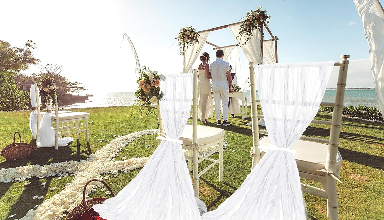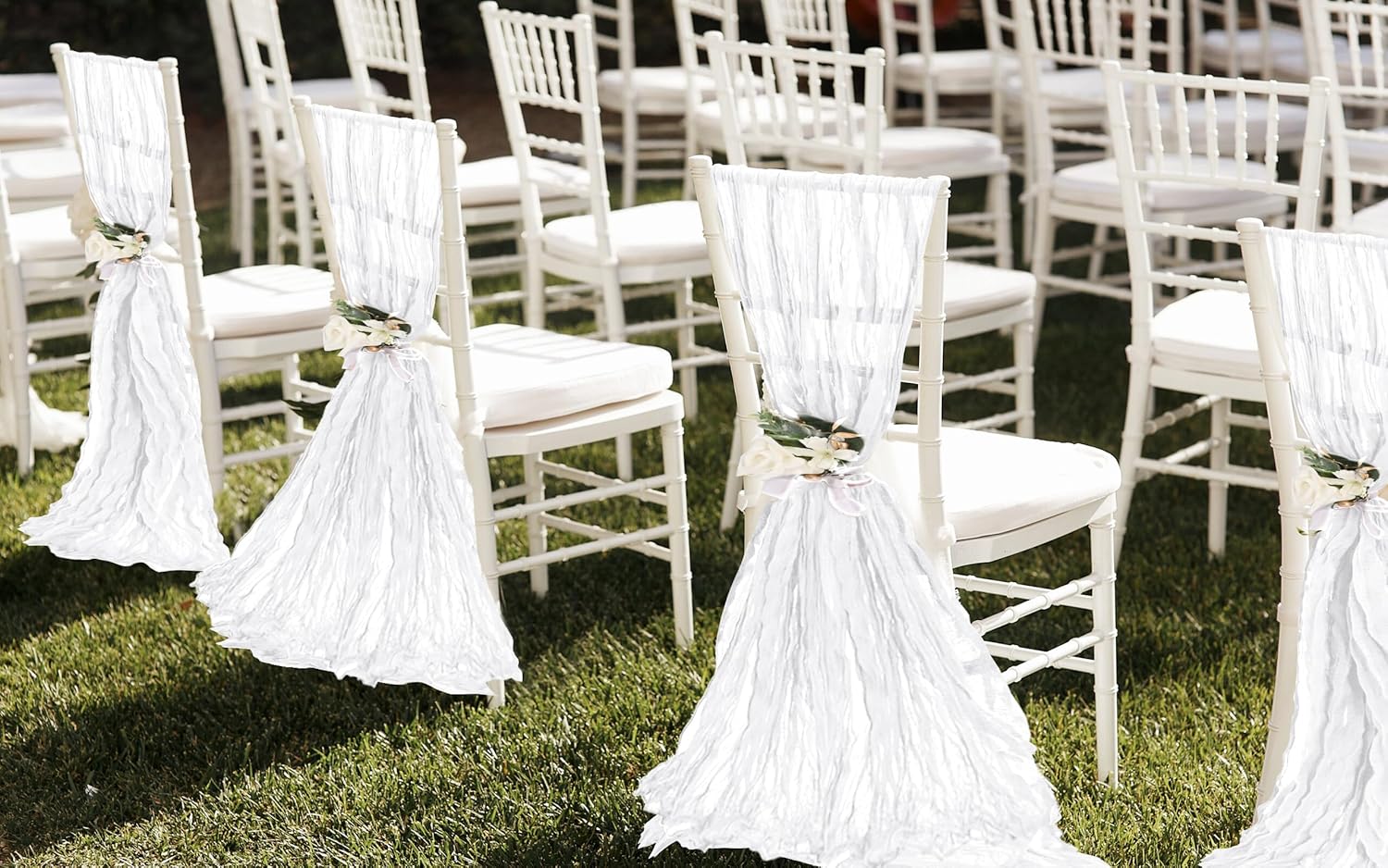 - 【Delicate Craftsmanship】White cheesecloth chair sashes adopt unique pleated workmanship, and the overall appearance is simple and elegant, creating an elegant and romantic atmosphere easily. The edges are carefully stitched to keep a perfect flowing condition, will not get broken or loose easily, can serve you for a long time